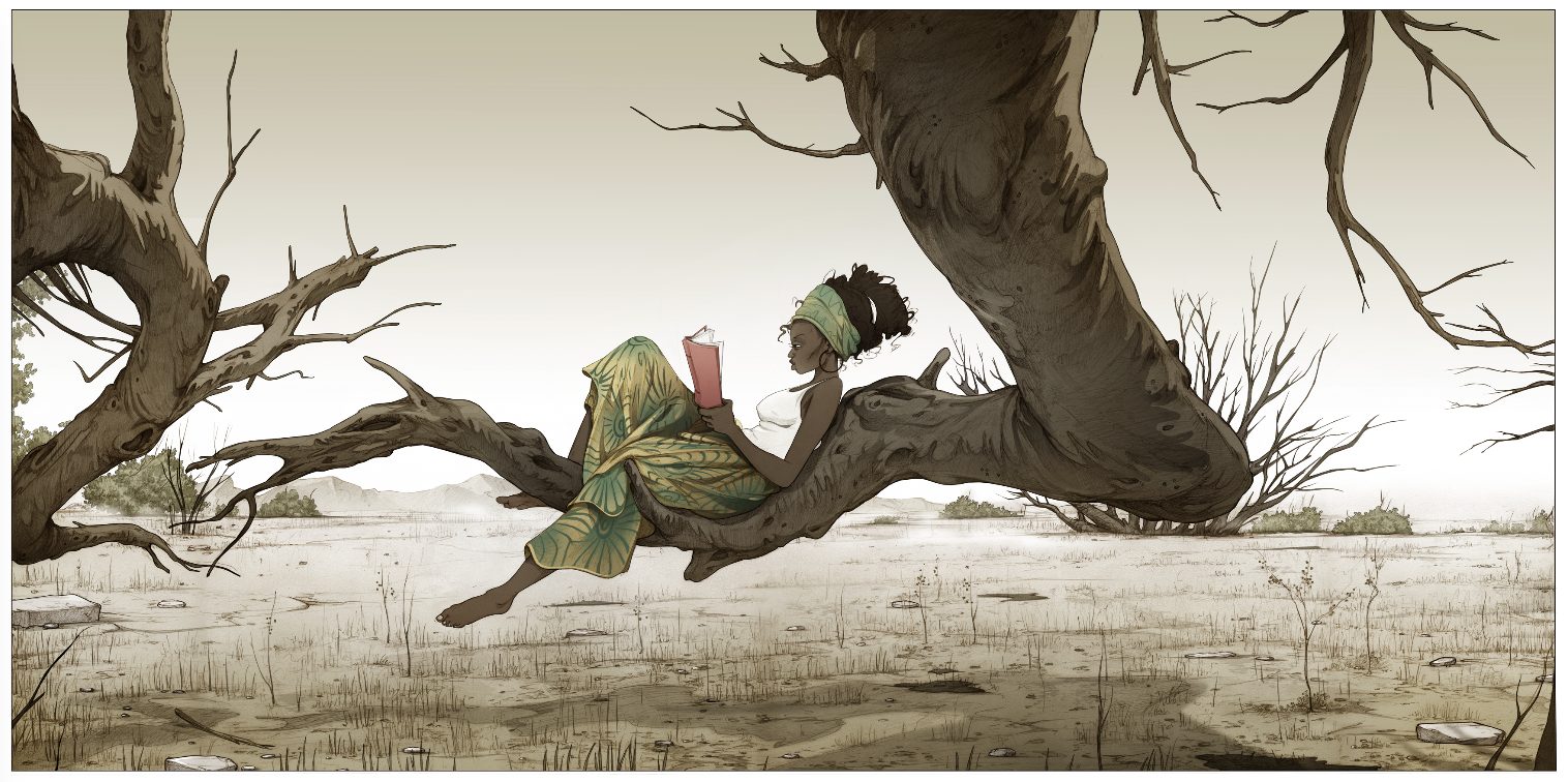 Je t’avoue que cette BD ou du moins l’univers je l’ai toujours eu en tête depuis que je dessine. A l’époque ou d’autre achetaient des STRANGES, moi j’achetais des livres de photos sur l’Afrique… J’aimais me plonger dans ces images et je dessinais des huttes, des paysages, etc… A l’époque, j’avais peur de me confronter au scenario, j’avais prévu de lancer cet univers avec un ancien ami (pour la partie écrite) mais les aléas de la vie ont fait que ca ne se fasse pas et quand j’ai voulu faire un projet avec une vibe super positive et ben c’est dans cet univers que j’affectionne tout particulièrement que j’ai écrit mon histoire.