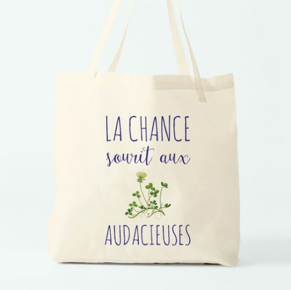 Quand j’étais graphiste, j’étais frustrée par ce métier où on ne décide pas du rendu final, c’est le client qui dit donc c’est rarement très satisfaisant. Un jour, sur les conseils de mon mari, j’ai commencé à poster mes dessins sur ma page perso facebook. Puis une copine m’a dit qu’elle voudrait bien l’un de mes dessins en version poster ; c’est comme ça que j’ai lancé ma boutique en ligne en 2013. Au départ, c’était des posters et des cartes postales. Un an plus tard, à l’été 2014, j’ai trouvé un imprimeur qui faisait des tote bags et j’ai pu lancer ma collection : c’est ça qui a vraiment lancé la marque.