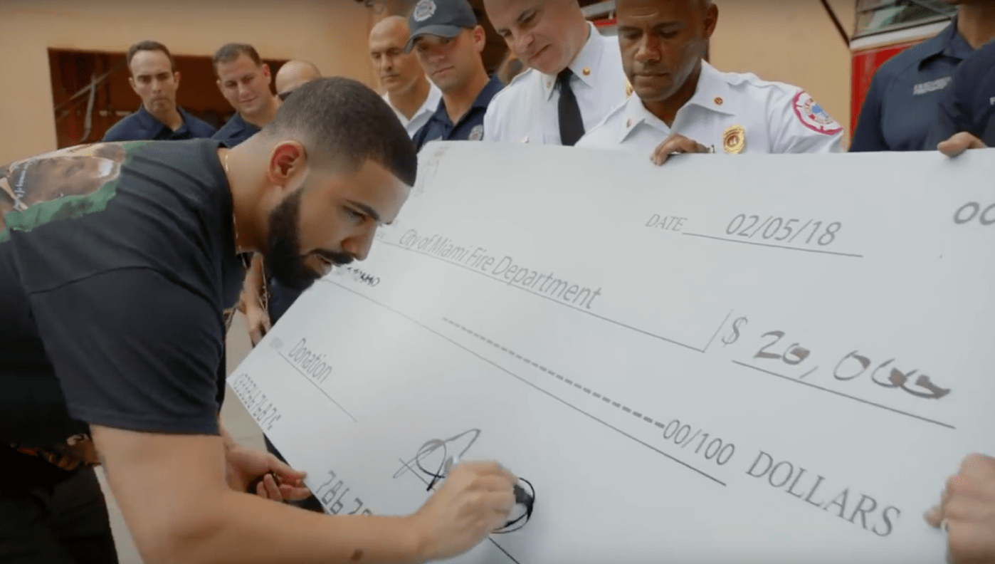 Dans la veine de tous les rappeurs qui redonnent à leur communauté, (T.I, Chance The Rapper, etc…) DRAKE propose pour son nouveau titre “God’s plan” une vidéo documentaire dans laquelle il distribue de la somme de 996 631,90 $ à des écoles, des pompiers, des gens dans la rue. C’est notre video of the week!
