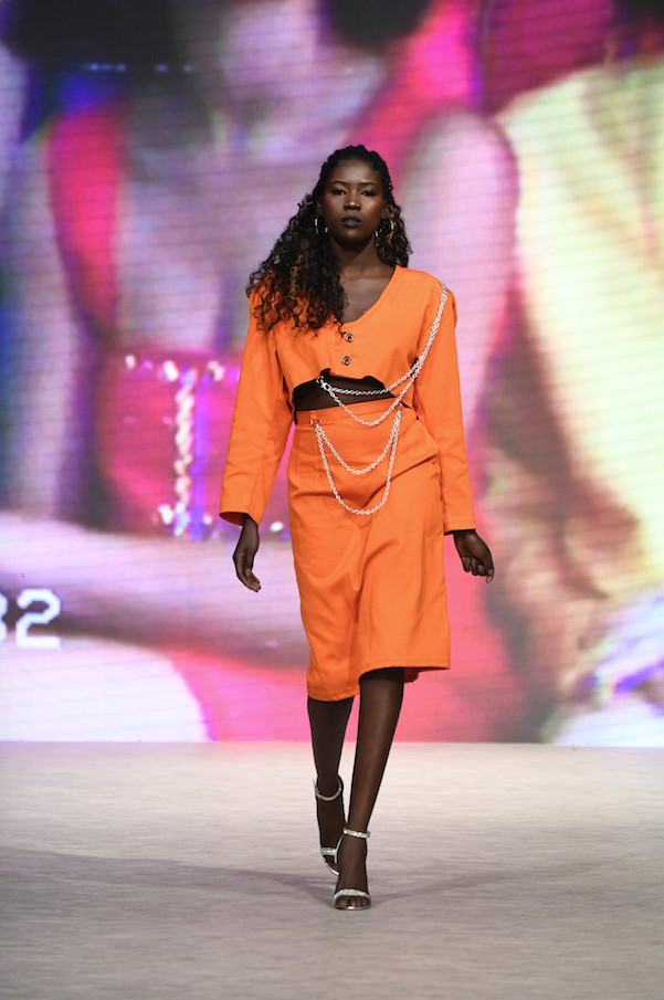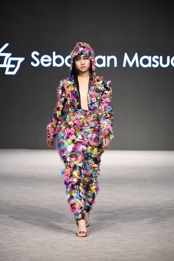 Le concepteur de Vancouver, Casey Lamb, de KSLAM, a transporté le public à une discothèque de 1985 avec «Vapor Wave». Cet autodidacte de 21 ans a été inspiré par les mèmes internet des années 2000, l’art des années 80 et la musique new wave des années 70 pour créer une collection qui critique le consumérisme moderne et la culture pop. Une palette de néons de tissus usagés et nouveaux a été accentuée avec des boucles de siège d’auto, des chaînes et des baskets à plateforme imprimées en arc-en-ciel. Les mannequins portant des costumes rose vif, des barboteuses bleu royal et des robes de soirée vertes moulantes portaient des boules disco comme sacs à main. Fusant des éléments de plusieurs décennies, les revêtements vintage de KSLAM apportent une touche unique au streetwear moderne.