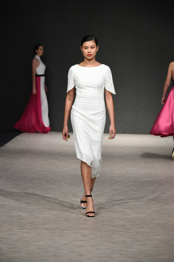 Classe, élégance et intemporalité sont trois mots pour exprimer la collection raffinée présentée par la marque australienne Lena Kasparian. «After 5» proposait des tenues de soirée et des cocktails pour hommes et femmes dans un style tellement glamour. Des robes en soie rose vif et des robes à paillettes avec des détails de couture et des tissus luxueux donnent un ton opulent à la mode féminine. Pour les hommes, les costumes gris chics et bleu marine, joliment adaptés, étaient portés avec des chemises blanches nettes. Une collection sophistiquée.