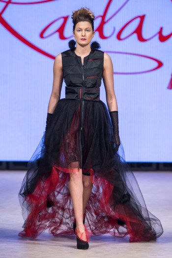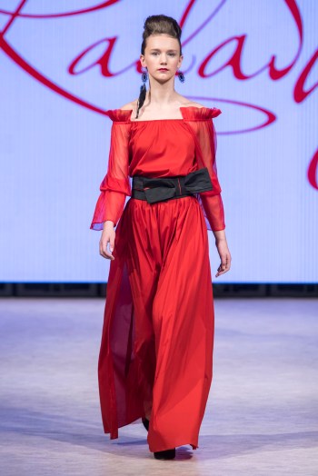 La collection Radastyle, du designer biélorusse Tatsiana Sychova, incarne l’élégance intemporelle et magnifique. «Orbit of Time» utilise des silhouettes classiques et flatteuses dans des tissus sensuels qui se distinguent par leur maîtrise des détails les plus fins. De superbes robes flottantes en soie et en satin glissaient le long du défilé atténuées par des décolletés attrayantes, des manches à volants, des lignes de taille détaillées et des ourlets généreusement découpés sur le biais. La collection était cohérente, élégante et modeste, tout en étant à couper le souffle et sensuelle.