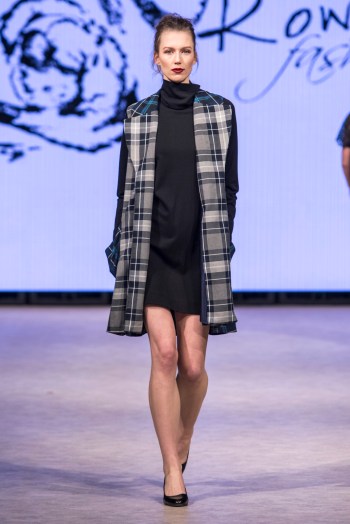 Rowes Fashion, une marque canadienne de Rebecca Rowe, a présenté une collection mignonne et incroyablement portable. «Solid Ground» s’est ouverte avec une mini-jupe courte à carreaux associée à un haut en dentelle transparent. Elle s’est spécialisée dans l’association de motifs improbables tels que la dentelle, le plaid et les fleurs noires. Collection de jupes, robes de cocktail et vestes décontractées, la collection a pris des silhouettes simples et les a distinguées par le mélange de motifs et de petits détails en dentelle sur les ourlets et les manches.