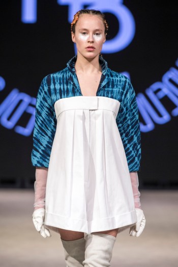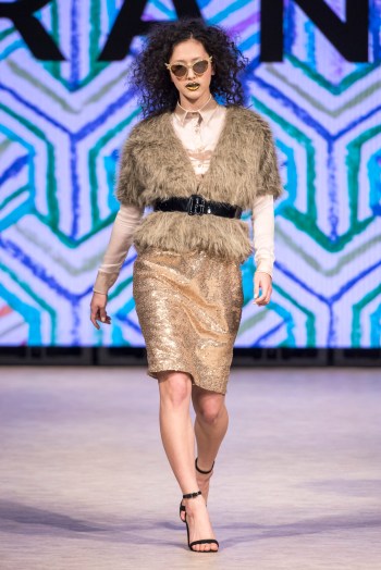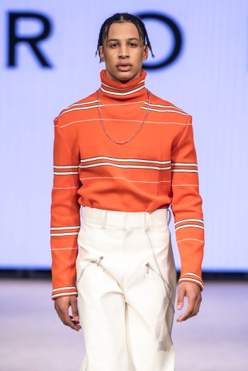 Le designer de la ville natale et récent diplômé de Blanche Macdonald, GEROME, a clôturé la soirée avec un spectacle électrisant de looks inspirés du streetwear pour hommes et femmes. La collection comprenait un large éventail de matières et d’influences, allant du pantalon en cuir blanc glacé à des cols roulés orange fluorescent, en passant par une immense veste en velours côtelé et un pantalon marron assorti. So Loki, groupe de rap basé à Vancouver, était explosif et viscéral, conduisant des mannequins à marcher avec force sur la piste. Les influences sont venues directement de la culture hip-hop avec des échantillons de modèles de 70 et de concepts futuristes. Le spectacle était incroyablement varié, mais il restait fidèle au sens du style de GEROME. Il a été ovationné par la foule alors qu’il dansait avec ses modèles au tout début du spectacle.