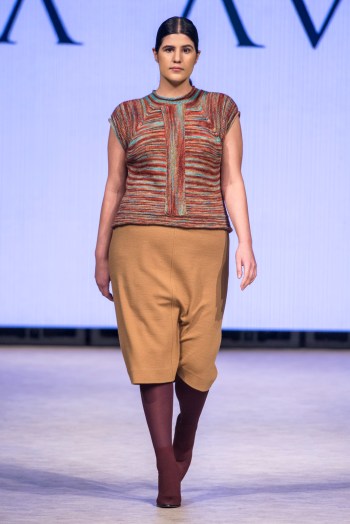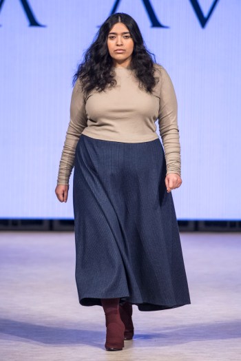Lisa Aviva, de la créatrice canadienne, basée entre Toronto et New-York Lisa A. Bleviss, a dirigé la piste avec une collection extrêmement accessible mais modérément sensuelle. De marque 10 +, la collection Bleviss était une célébration des courbes. Il présentait une sélection de robes et de jupes allongées qui flottaient sur la piste dans des couleurs à la fois discrètes et sophistiquées: vert armée, camel et blues. La collection proposait des pièces à la fois ajustées et flatteuses qui ne cachaient pas mais célébraient une forme entièrement figurée. La collection s’est terminée sur un haut avec deux tricots, longueur du talon, ponchos cintrés à la taille en rose rougeâtre et rouille avec des touches de bleu, marron et vert. Véritable témoignage de l’art minutieux, créatif et novateur, Lisa Aviva a créé une ligne qui séduisait non seulement les femmes de taille plus grandes, mais qui, en fait, était meilleure sur une forme complète que toute contrepartie de taille zéro.