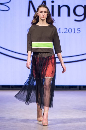Le studio Ming Design Studio de Ching-Ming Chen, basé à Taiwan, a débuté. Sa dernière collection, «Charm.2015», est définie par des nuances de couleurs vives rassemblées dans diverses silhouettes. Des jupes peplum aux manteaux militaristes, Ching-Ming a revêtu la forme féminine de toutes les manières possibles. Évoquant la nostalgie à travers des designs rétro, Ching-Ming a utilisé des tissus subtils de coton et de transparence mis en valeur par des accents de velours. Les ensembles ont été complétés avec du maquillage naturel et des chaussures blanches, noires ou nude. De nombreuses tenues étaient également associées à de petits sacs à main aux couleurs vives suspendus au niveau de l’ourlet.