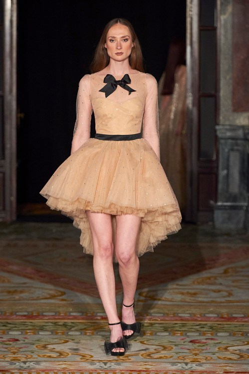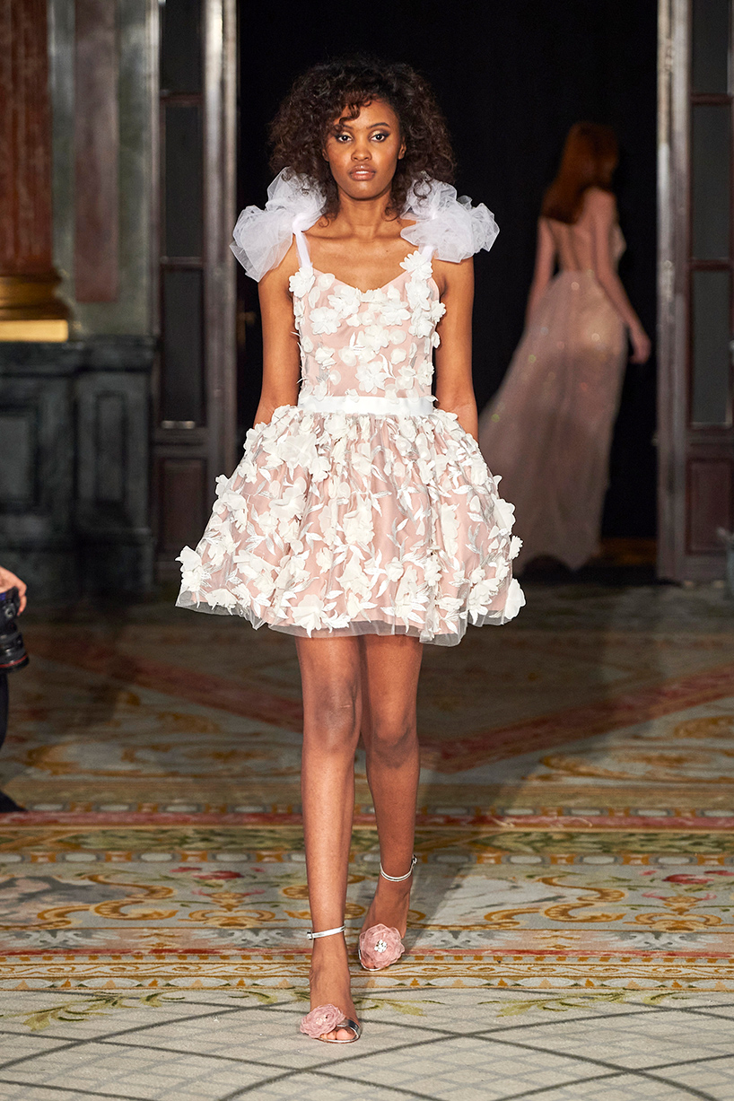 La collection intitulée «Andy» englobait les meilleurs tailleurs artisanaux de pièces de mode féminine de tous les jours. La créatrice s’est inspirée de jolis pastels et cristaux mêlant haute couture et tous les jours avec dentelle, tulle et satin. Les pièces phares comprenaient une robe haute en tulle blanc à plusieurs niveaux et une robe de cocktail bouffante à ceinture blanche avec des détails floraux en organza et des nœuds d’épaule en tulle.