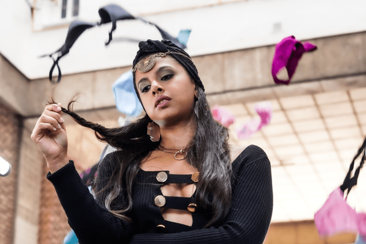 J’ai grandi en écoutant le flamenco, le reggaeton et d’autres musiques latines mais mon adolescence a été très marqué par le Hip Hop des années 90 avec des figures comme Biggie, Nas, Lupe Fiasco mais notamment des rappeuses comme Lauryn Hill, Salt’N’Pepa, TLC, Missy Elliott, Remy Ma etc Plus tard je suis allée fouiller dans mes racines indiennes pour découvrir les chants utilisés dans le bharatanatyam par exemple. Aujourd’hui ma musique est un reflet de tout ce parcours, on ressent mes migrations à travers les différentes sonorités mais on repère mes influences par ma technique et ma façon de rapper.