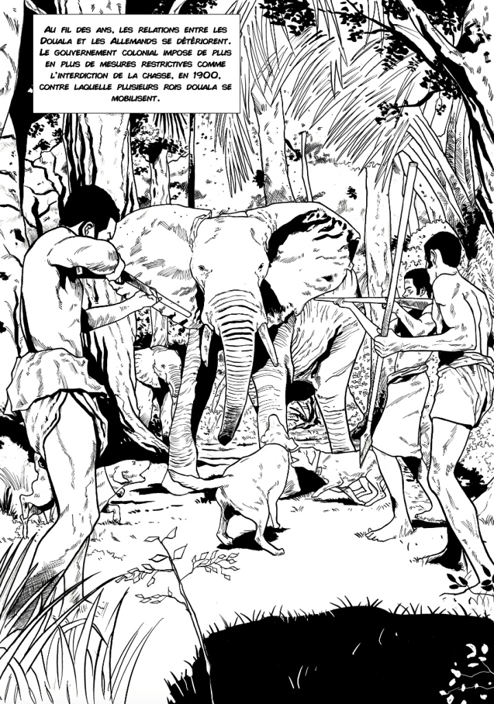 Pour le moment je suis juste sur l’action d’atteindre des objectifs sur des projets des client , dont une BD, une maquette de décor architecturale et une sortie d’un film animé et enfain une BD animée à réaliser, qui tous sont encore des projets confidentiels, mais bientôt seront de sortie ce pendant je participe à un projet d’exposition en tant qu’artiste dessinateur de BD à laquelle mes travaux sur la BD intitulée DOUALA MANGA BELL et les illustrations sur LA RESISTANCE DES FEMMES KOMS face aux colons allemands ( lien du projet de BD : https://www.initiative-perspektivwechsel.org/…/widerst…/) y sont exposées au Rautenstrauch-Joest-Museum ( http://www.rautenstrauch-joest-museum.de/ ) en allemagne le projet de l’exposition ”RÉSISTEZ ! L’art de la resistance ” Illumine 500 ans de résistance anticoloniale dans le Sud mondial et parle de la violence coloniale et de l’oppression et de ses continuités. L ‘ exposition rend hommage aux femmes et aux hommes qui ont résisté de la manière la plus variée et dont les histoires n’ont presque jamais été racontées ou entendues à ce jour.