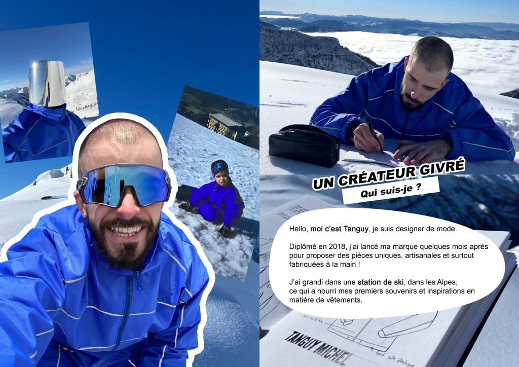 Personne de mieux placé que Tanguy lui-même pour se présenter, ce designer de mode tout particulier grandit dans une station de ski et s’inspire de ses montagnes dans tous ses designs. Son atelier se situe à 3000 mètres d’altitude, en Haute montagne, puisqu’il y trouve les formes, textures et couleurs qu’il retranscrit par la suite dans ses vêtements. La matière utilisée n’est pas moins originale, il utilise par exemple, de la mousse acoustique pour faire référence au silence dans son milieu naturel et en plus, ça a la forme de montagnes. Un créateur indépendant fascinant, a absolument suivre des maintenant !