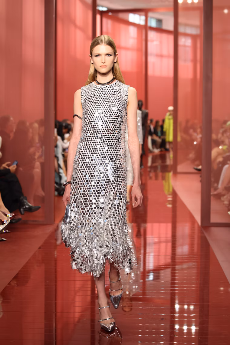 Dans le cadre enchanteur du Musée de la Triennale de Milan, métamorphosé en un corridor lumineux pour l’occasion, les teintes d’un coucher de soleil estival, allant du blanc immaculé au rouge profond, créent une atmosphère immersive et éphémère. Le décor de Gucci est planté.