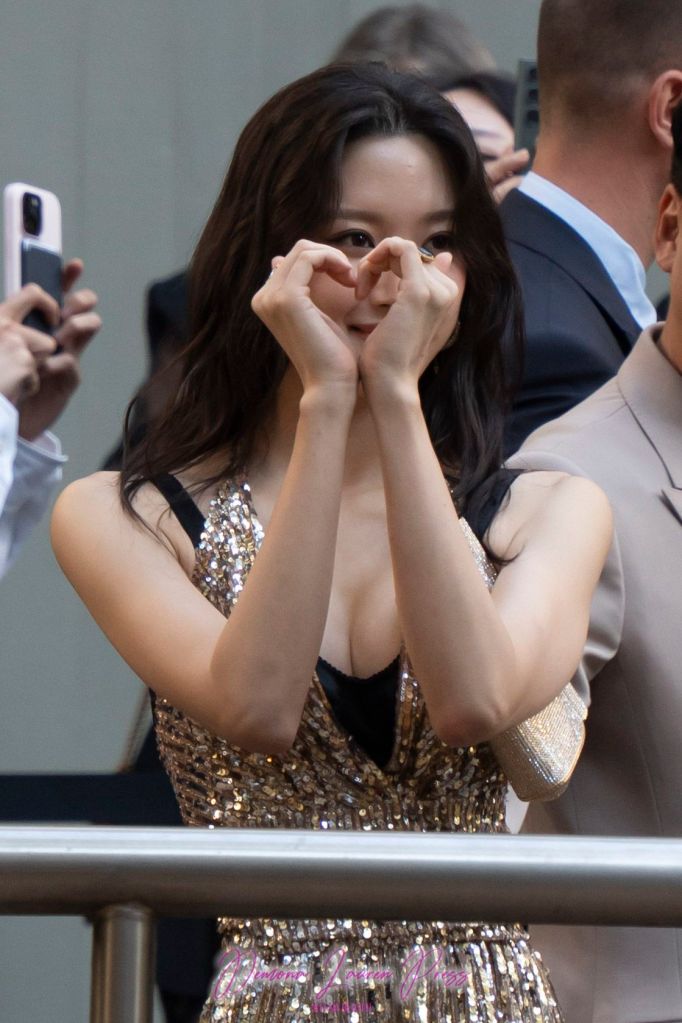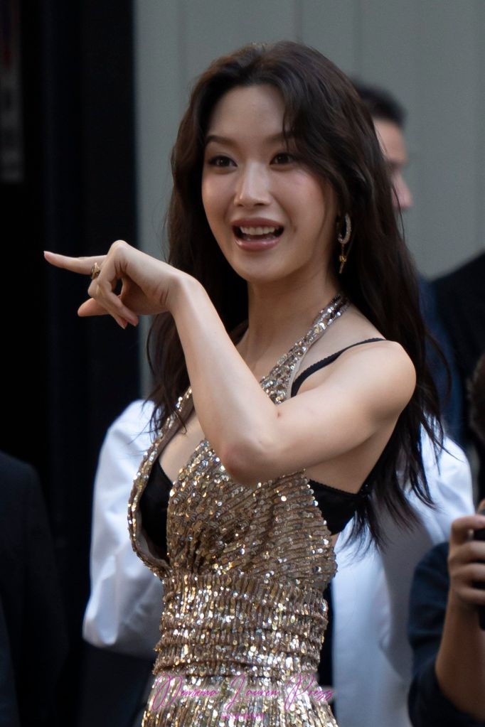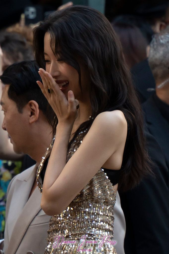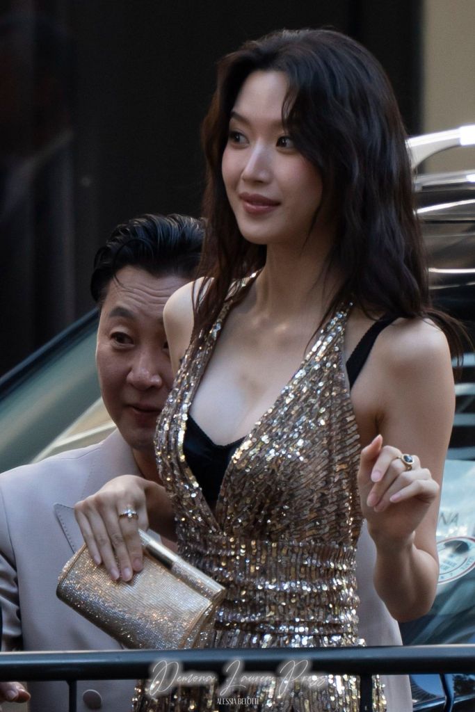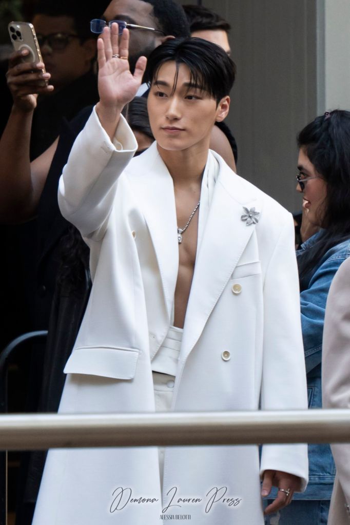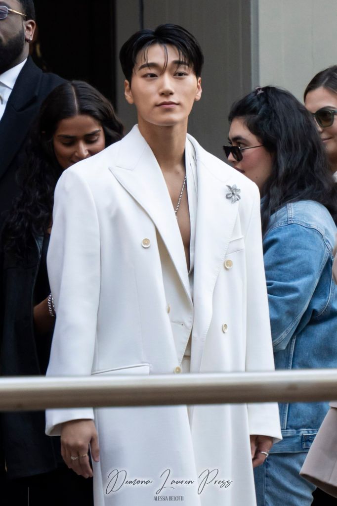 Le clou du spectacle est sans aucun doute le smoking noir en satin à double boutonnage, ses lignes nettes et son corsage structuré évoquant une sophistication d’antan, tout en semblant tout aussi audacieux et moderne dans le paysage de la mode d’aujourd’hui.