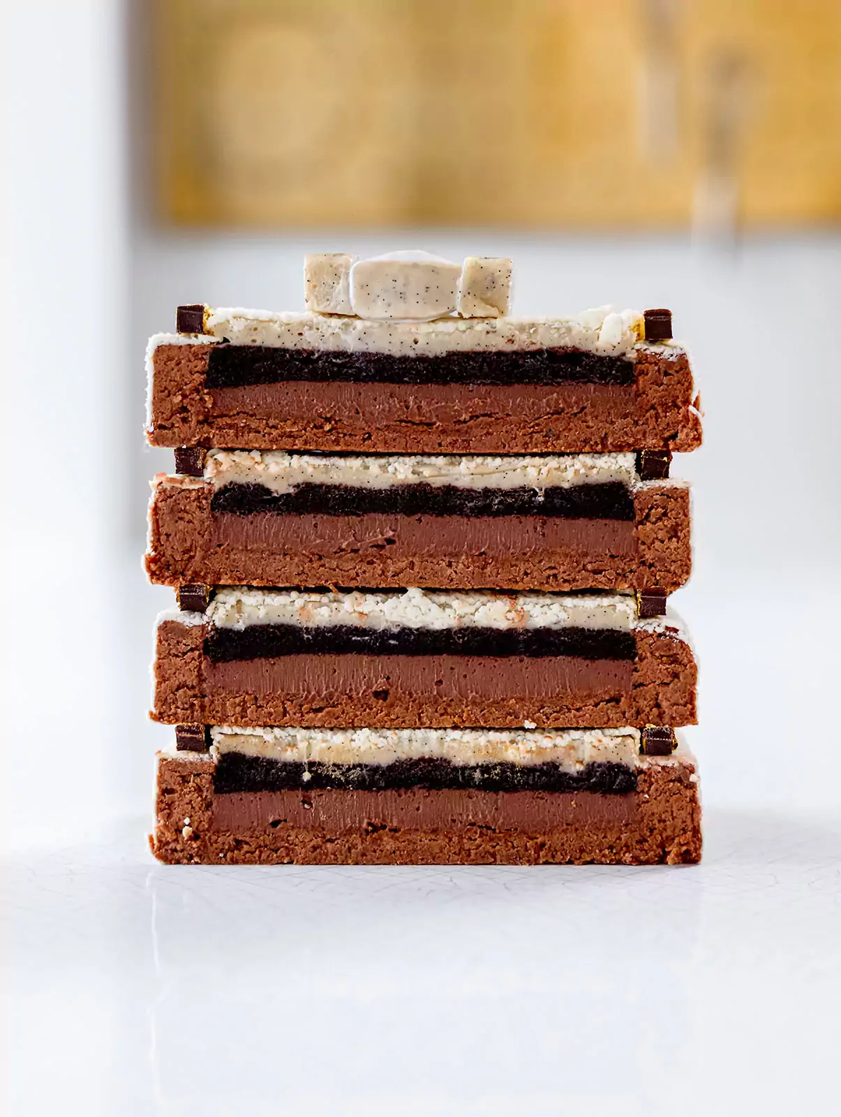 Mais ce n’est pas qu’un simple spectacle visuel – les saveurs de la bûche sont tout aussi décadentes, avec des couches de chocolat riche, de mousse soyeuse et un croquant délicat qui transportent le palais dans un voyage de gourmandise.