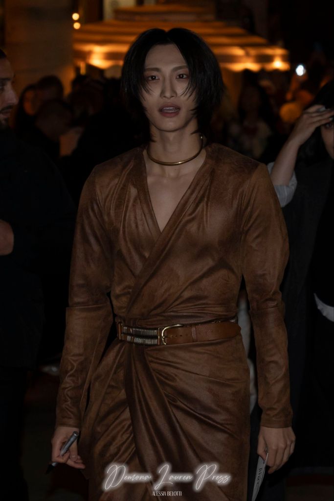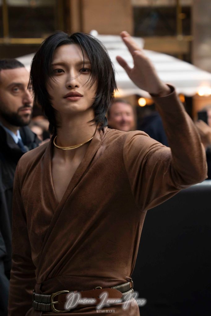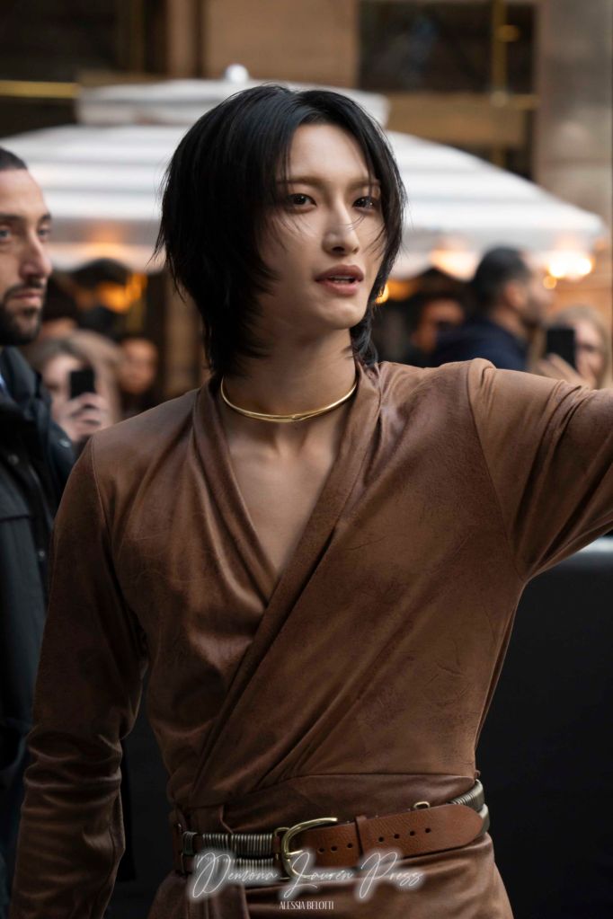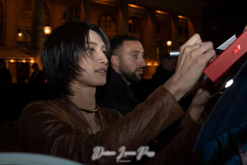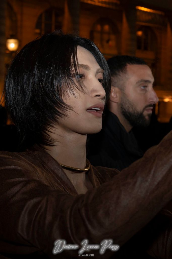 Sous la lumière déclinante d’une soirée parisienne, le Palais Royal s’est transformé ce septembre en théâtre d’une narration vestimentaire où Isabel Marant a continué de tisser son récit d’une mode en perpétuel mouvement. Pour le printemps-été 2025, la créatrice a dévoilé une collection s’inscrivait dans une quête d’horizons nouveaux, portée par un esprit nomade qui transcende les frontières. Entre les colonnes de Buren, les silhouettes se dessinent, portées par une brise légère qui fait danser les tissus, comme un prélude à un voyage imminent et sous le regard un peu bohème d’un invité surprise, Park Seonghwa du groupe ATEEZ.