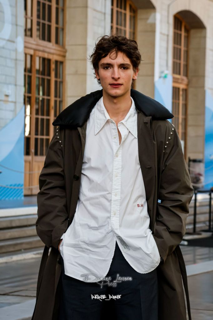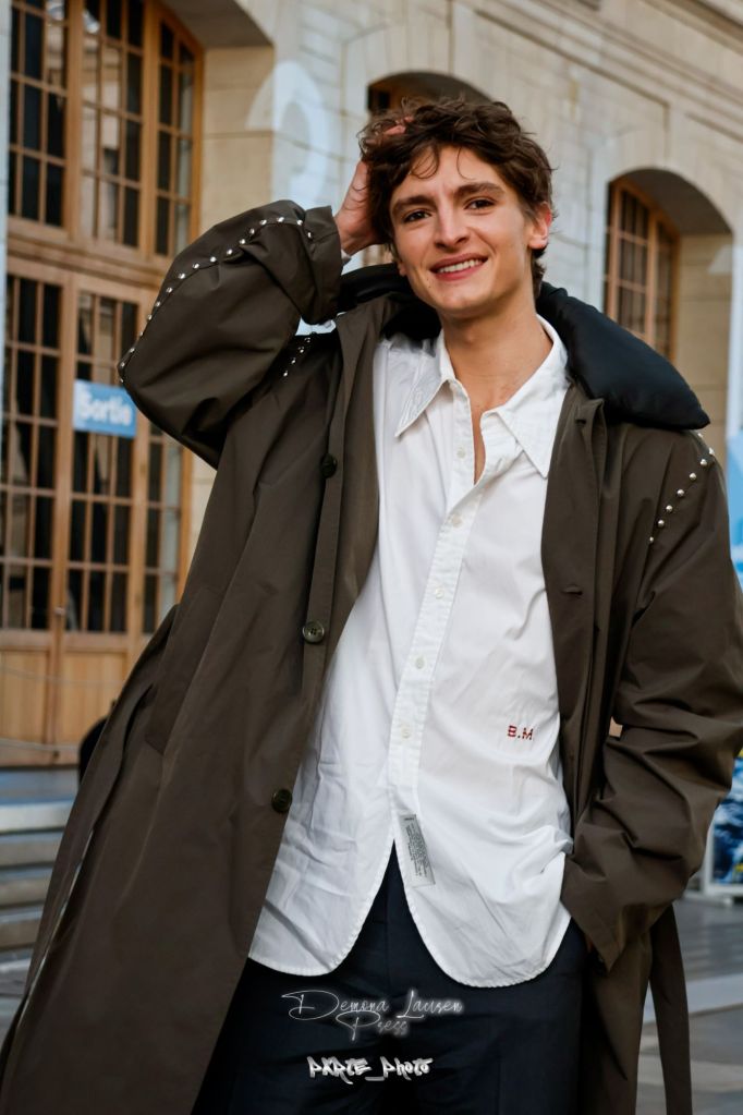 Alvarez excelle dans l’art du contraste. Pendant que les créations de Mory Sacko, chef cuisinier étoilé et révélé au public lors de sa participation à Top Chef, parfument l’atmosphère, les mannequins, eux, apparaissent, parés de survêtements bordés de dentelle et de broderies champêtres – une tension maîtrisée entre vitesse urbaine et volupté pastorale. La collection s’exprime en dialectes texturaux : le cuir lisse entre en contact avec le denim brut, dispersant la lumière sur les surfaces matelassées.