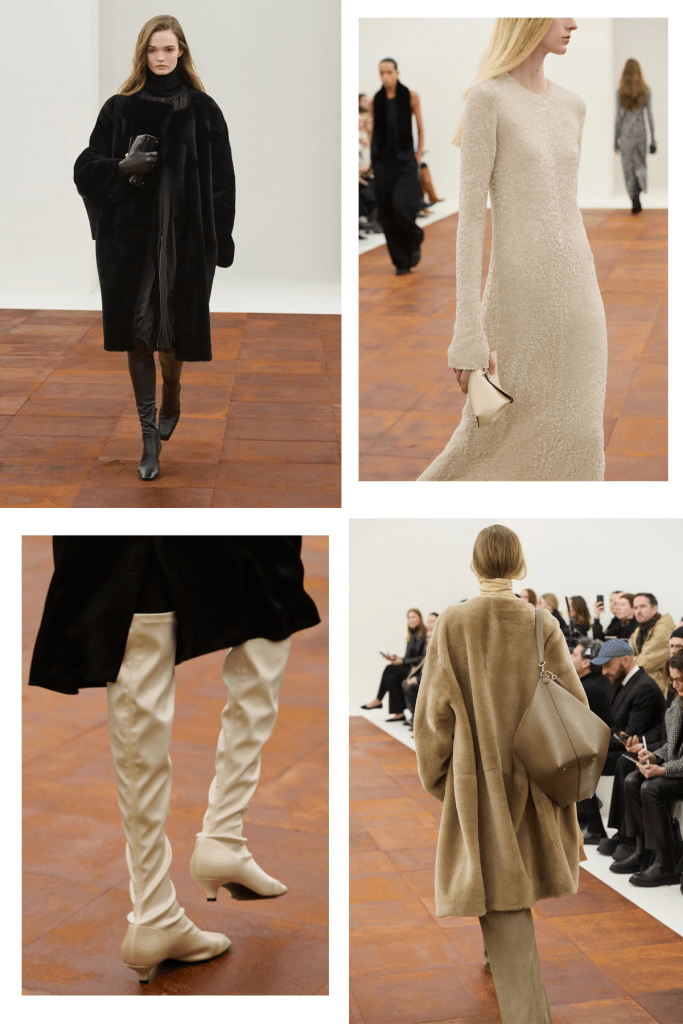 À Paris, la maison s’affirme cet hiver comme maître de l’art minimaliste, utilisant une palette de couleurs restreinte dans l’idée de mettre en valeur des textures pourtant luxueuses, à commencer par ses vestes en shearling et ses capes en nylon. Cette prise de position ne sacrifie toutefois rien à l’impact visuel ; au contraire, elle magnifie chaque détail, transformant chaque vêtement en une œuvre d’art subtile aux yeux les plus sophistiqués.