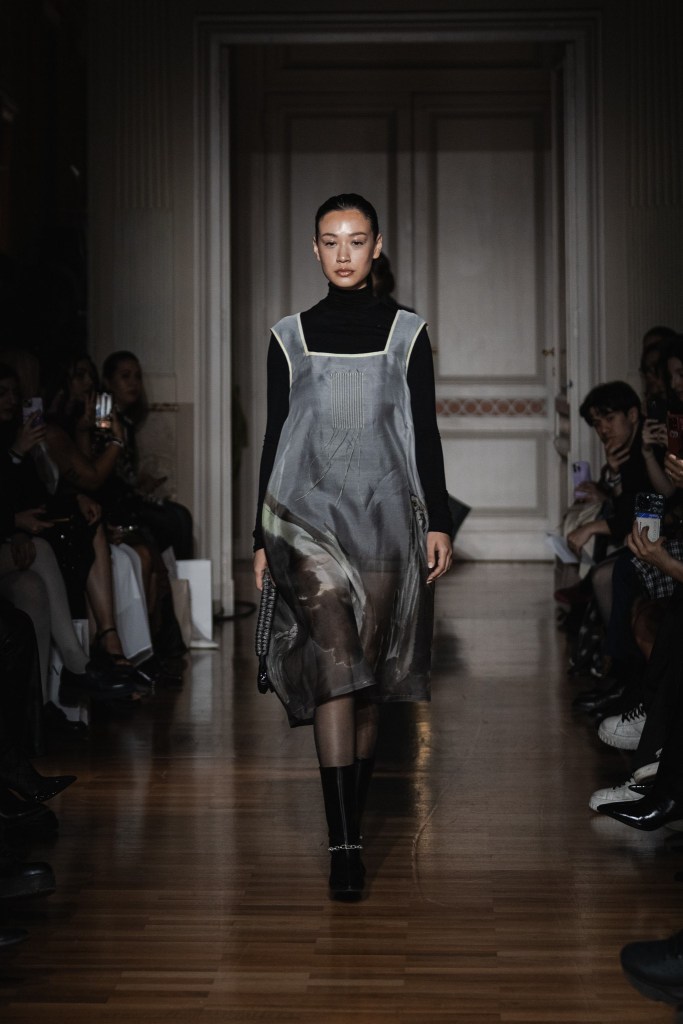 TROA est une marque qui valorise la soie — un tissu à la fois luxueux et délicat. La marque se divise en deux branches : la collection principale, et les “Skelts”. Notre collection exploite toute la délicatesse de la soie pour créer une « nouvelle idée de la soirée ». À Séoul notamment, les robes de bal longues ne sont plus la norme ; nous cherchons donc à concevoir des tenues du soir plus pratiques, en phase avec les modes de vie actuels. La ligne Skelt, quant à elle, propose des jupes-ceintures qui fonctionnent presque comme des accessoires. Elles permettent à chacun d’ajouter du caractère à son style, tout en conservant sa propre identité.