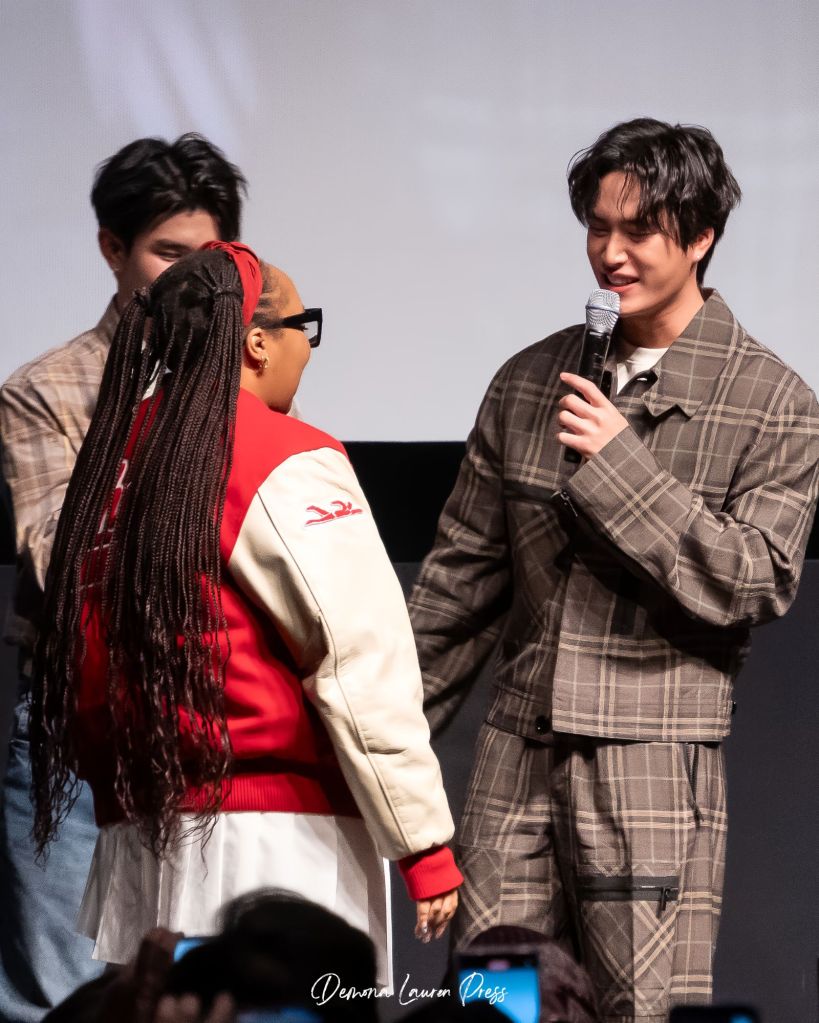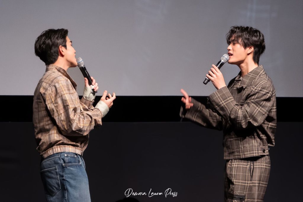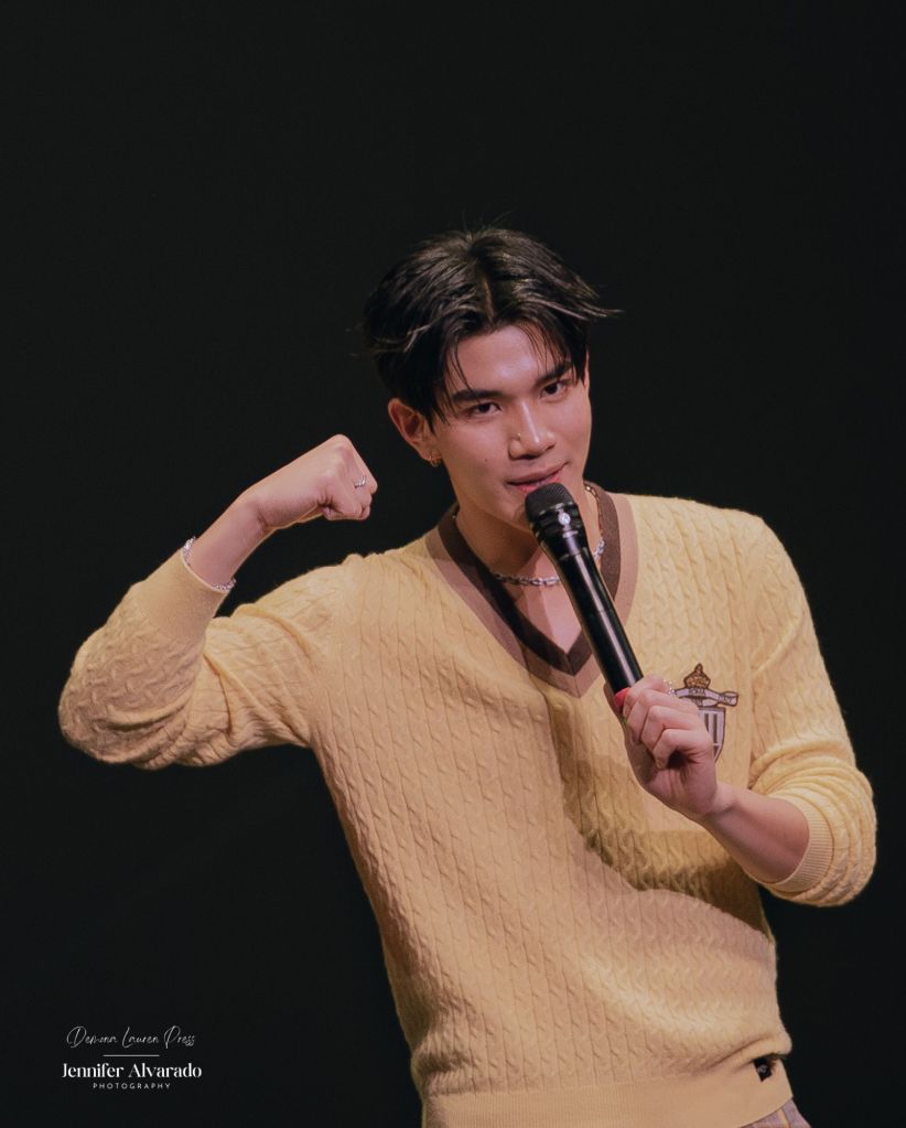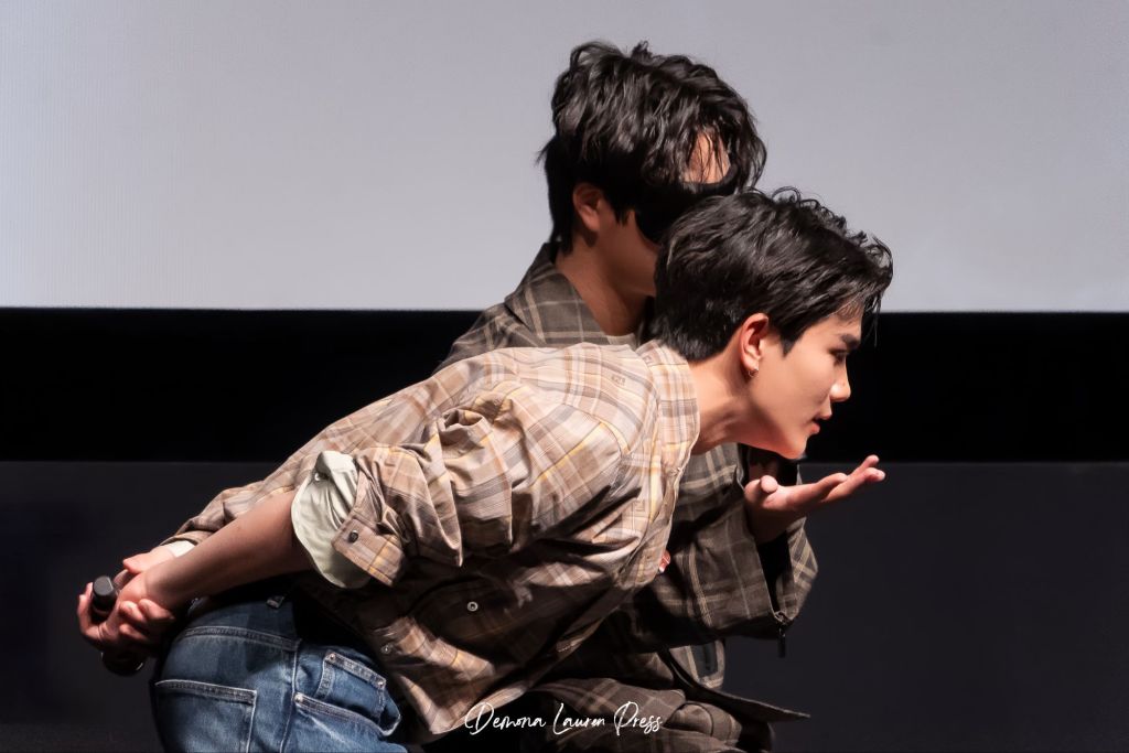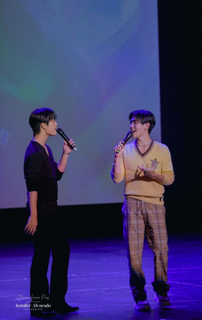 Le point culminant de la soirée est sans doute l’entrée surprise de Gemini et Fourth dans l’auditorium. Descendant les allées depuis l’arrière de la salle tout en chantant, ils créent un moment de pure magie, presque féérique pour les plus fervents amateurs de BL et de séries dans la salle, notamment ceux assis au fond, qui ne s’attendaient pas à cette proximité. Ce geste marque le début d’une soirée riche en interactions, en rires, mais aussi en émotion.