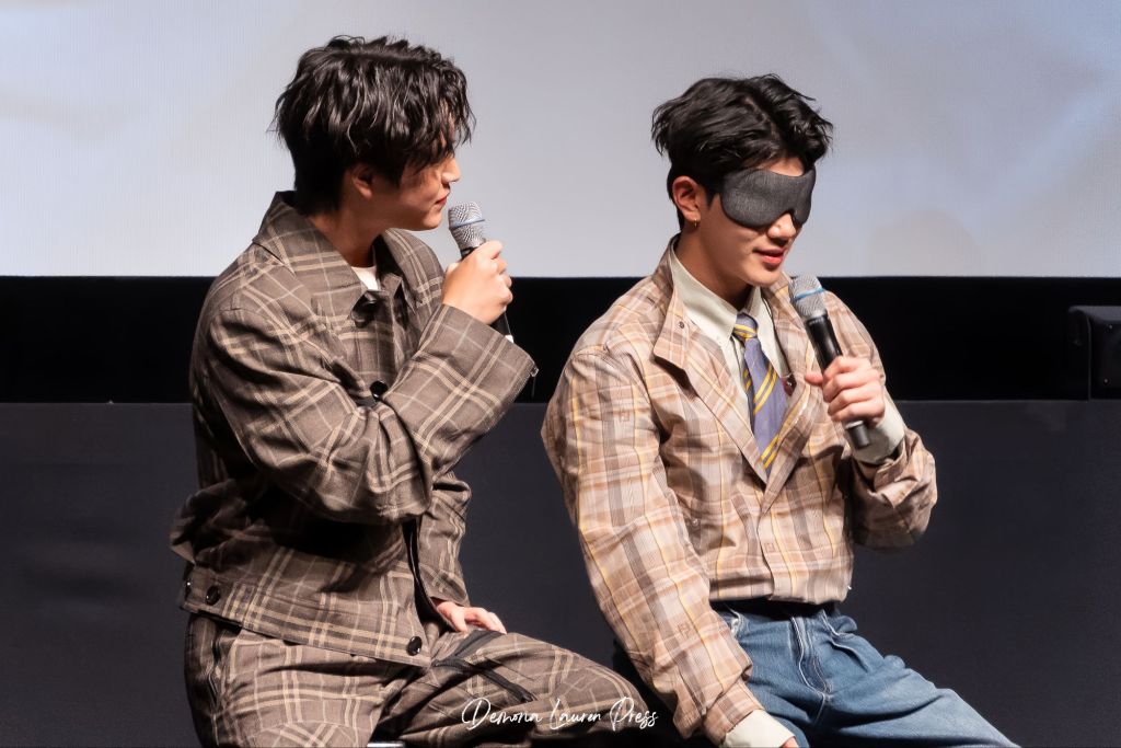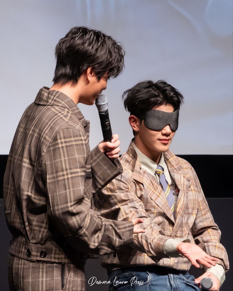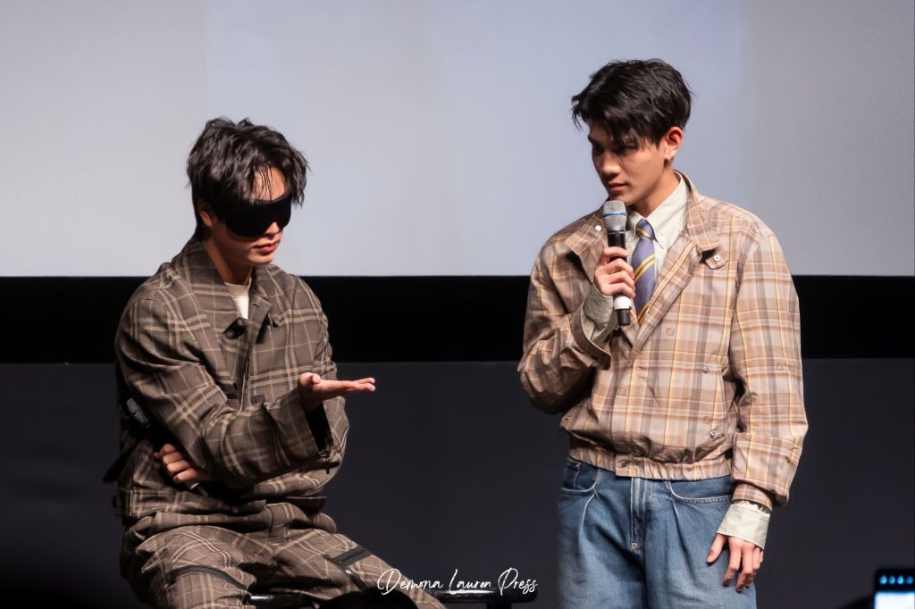 La soirée se poursuit et s’enrichit d’interactions. Parmi les moments les plus marquants, le jeu “Heavenly Touch”. Gemini et Fourth, tour à tour les yeux bandés, doivent deviner quelle partie du corps leur est placée dans la main. Les erreurs, comme Fourth confondant le coude de Gemini avec sa langue, ajoutent une touche d’humour qui fait vibrer la salle de complicité. Ces instants légers révèlent aussi une facette espiègle et accessible des deux artistes.