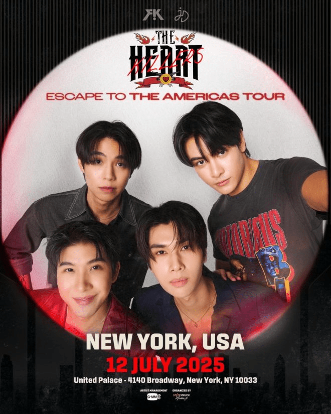 New York se prépare à accueillir une soirée exceptionnelle alors que The Heart Killers débarquent pour un événement unique au United Palace le 12 juillet 2025. De quoi réjouir les aficionados de la célèbre série thaïlandaise et de son casting, et nous-mêmes puisque la DL Team fera partie du voyage.