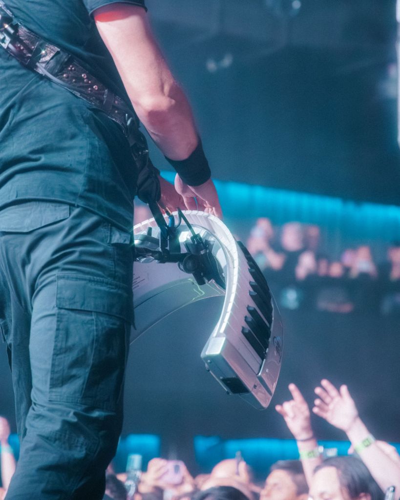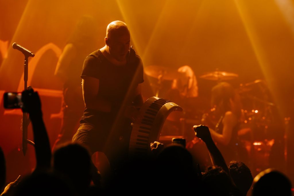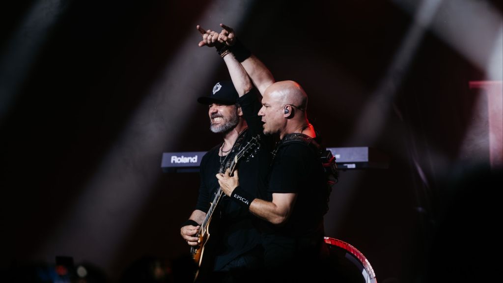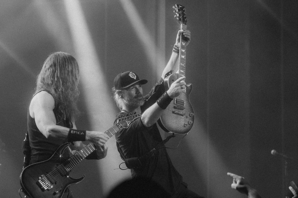 Simone Simons, souveraine, rejoint la scène sous une ovation méritée. Le groupe navigue avec aisance entre les époques, convoquant “Menace of Vanity” puis “The Last Crusade”, tandis que Coen Janssen, fidèle à sa réputation, s’aventure vers le public avec son clavier nomade, brouillant la frontière entre scène et salle.