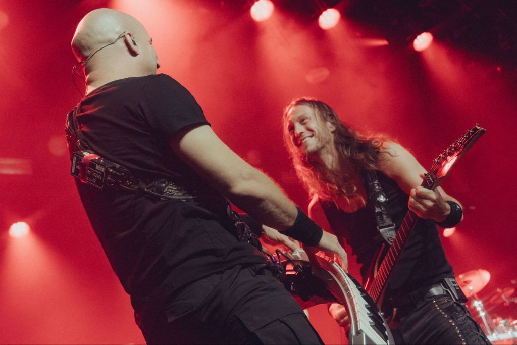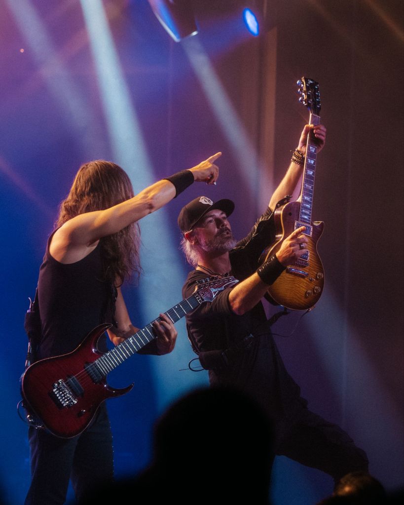 Les titres s’enchaînent, portés par une énergie sans faille : “T.I.M.E.”, “Kingdom of Heaven”, puis “Chasing the Dragon”, morceau longtemps absent des setlists, réapparaît comme un clin d’œil précieux aux amateurs de la première heure. L’ambiance atteint un sommet lorsque Simone, espiègle, arbore les cornes rouges offertes par le public pour “The Skeleton Key”.