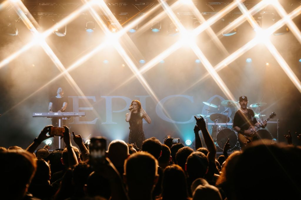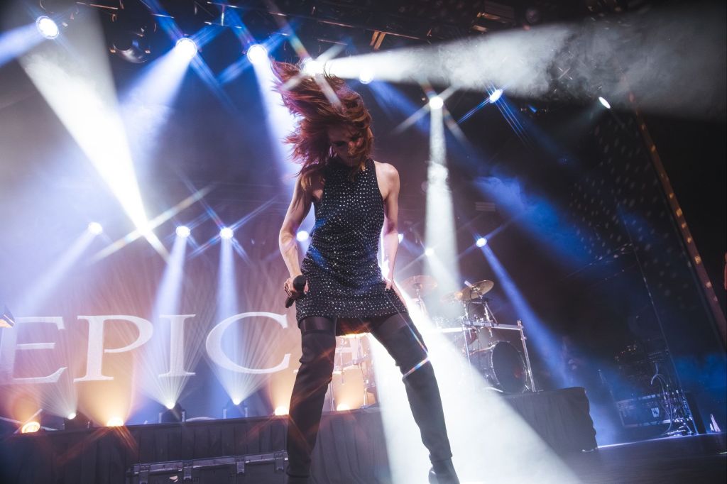La salle s’anime dès les premières notes de Red Devil Vortex, chargé de préparer le terrain. Rapidement, la foule se resserre, attentive, prête à accueillir les membres. Lorsque les lumières s’éteignent, un souffle d’enthousiasme parcourt la salle. Les membres d’EPICA prennent place, et c’est avec “Cross the Divide” que la soirée s’ouvre, menant d’emblée le public dans l’univers épique du nouvel opus.