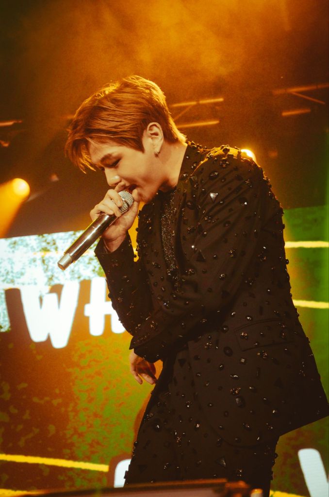 Pour sa toute première venue à Hambourg, Kang Daniel investit la scène du Grosse Freiheit avec “Losing Myself”, ouvrant la soirée sur une note résolument rock et énergique. Vêtu d’un costume noir scintillant et légèrement cintré, il infuse des airs d’artiste soul qui se produit dans une salle indépendante d’un quartier littéraire.
