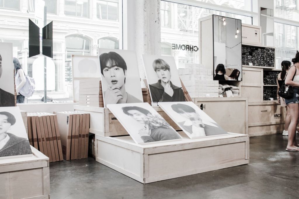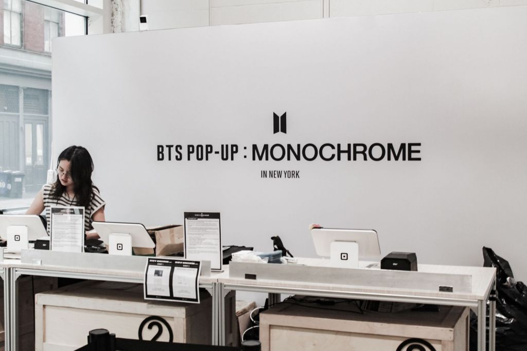 À New York, le pop-up BTS MONOCHROME ne se contente pas d’aligner des objets ou des vitrines. Oh non. Loin de là. Au cœur de son local industriel (d’une beauté), il invite les visiteurs à plonger dans un nuage commun de souvenirs, soigneusement distillés entre deux cartons ou plaques de mobilier. Le cœur du projet ? Ce fameux « Memory Cloud ». Moins une métaphore qu’un fil invisible qui relie à l’histoire de BTS, chaque souvenir encapsulé dans une bouteille numérique, prêt à être partagé, redécouvert, transmis.