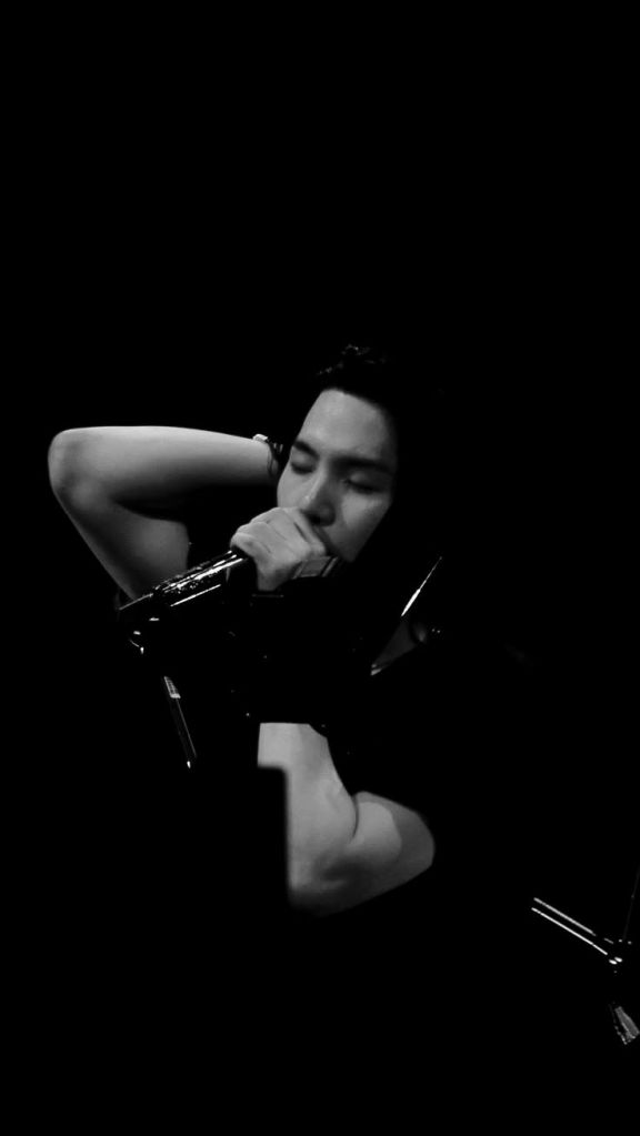 Au début, surtout lors de sa période Agust D, il se présentait comme une figure audacieuse, rebelle, presque en défi à la société. Ses premiers travaux étaient imprégnés d’énergie brute, d’agressivité, de douleur, de doutes, de colère. C’était une sorte de cri contre l’injustice, la pression, ses propres démons. Il racontait son histoire à travers une critique sociale tranchante, des images fortes, des mots sans compromis.