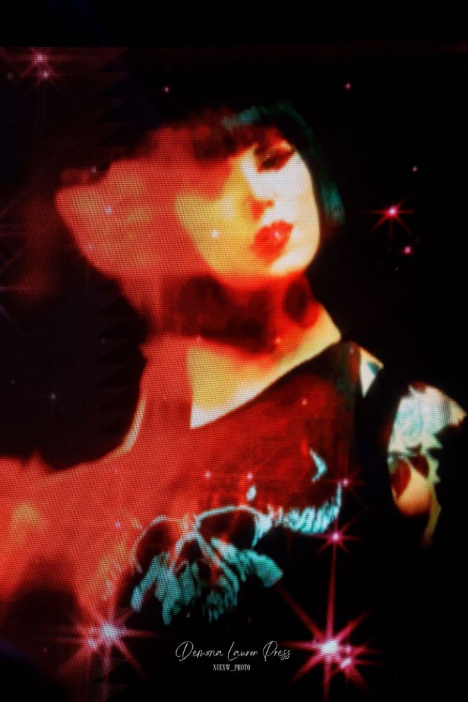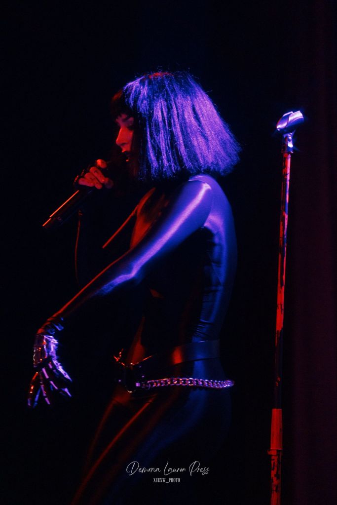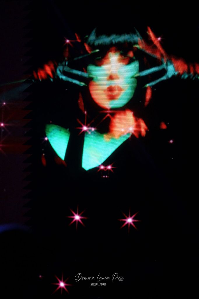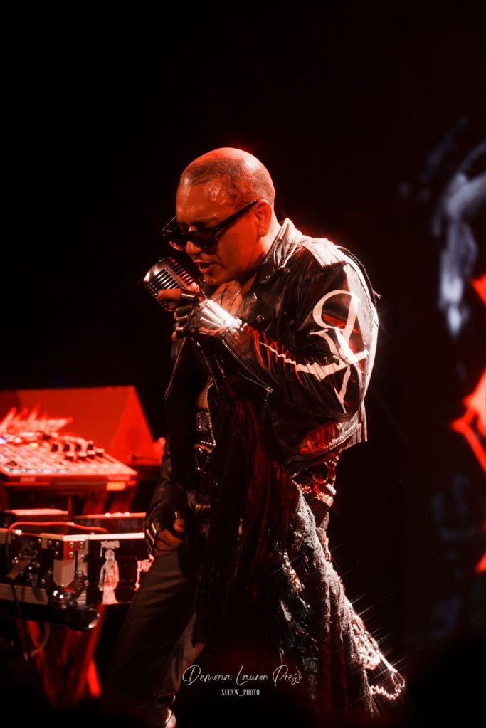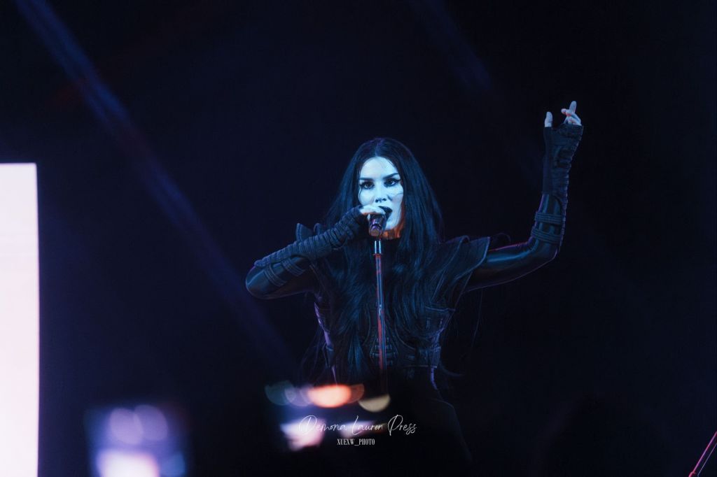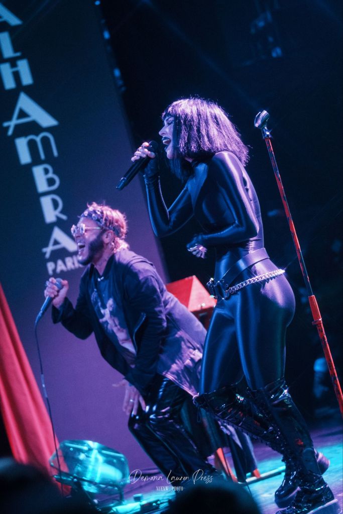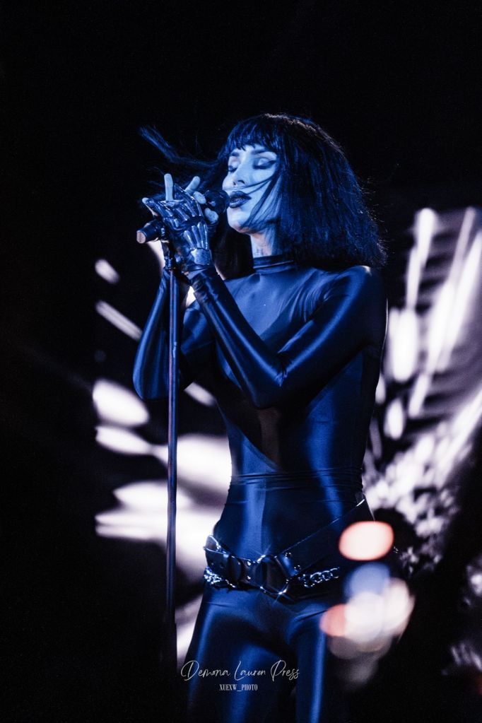 Le noir s’étire près d’une heure et demie plus tard, lorsqu’une nappe de synthés finit par habiter l’air. La magnifique “With You” débute. La salle respire dans ce halo éthéré avant que “Vampire Love” n’ajoute une pulsation disco wave qui allège la gravité du grain sans en gommer l’ombre. Tout l’équilibre de Kat Von D est là, du froid du synthétique à la chaleur des guitares. Sammi Doll, sa fidèle bras droit, tient l’ossature avec précision, tandis que la voix de Kat, tantôt grave, droite tantôt sans vibrato décoratif, prend en confiance.