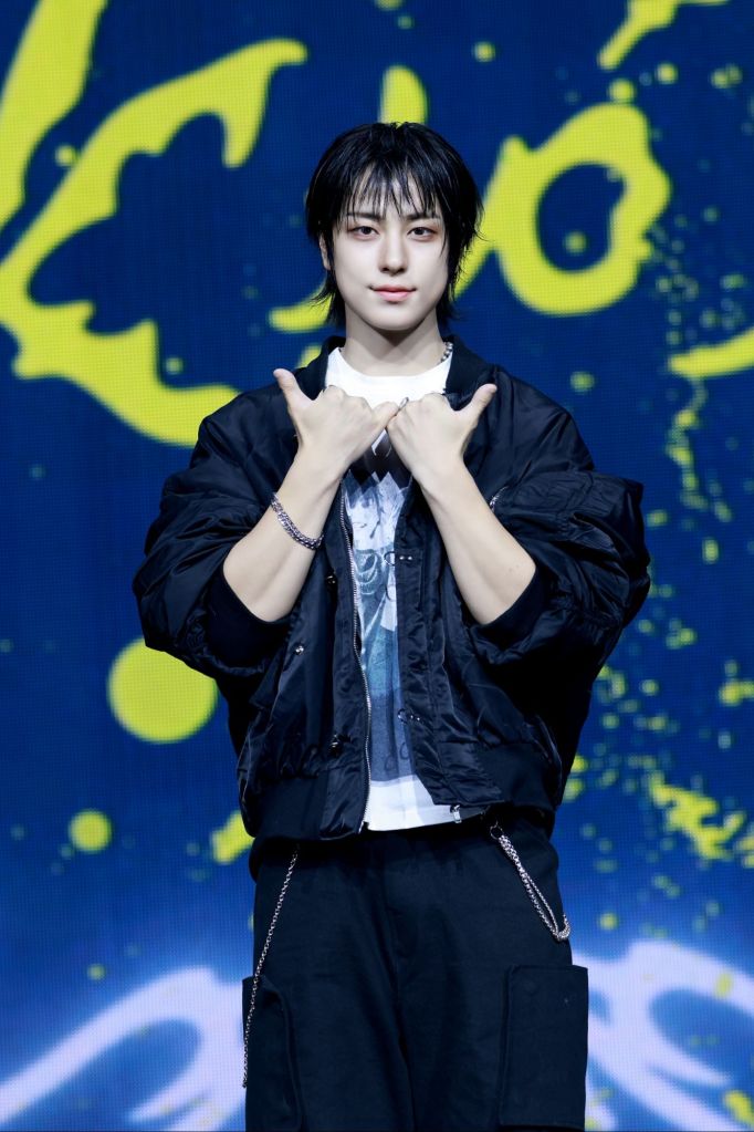 Chacun des neuf membres s’avance, tour à tour, pour une session photo rituelle. EJ, leader, a l’honneur d’ouvrir le bal. Sourire à la fois tendre et assuré, il capte la lumière comme il capte l’attention. Les poses s’enchaînent, signature de l’équipe, clin d’œil à l’esprit “loup” qui traverse l’imaginaire du groupe. Les journalistes dirigent, demandent, capturent.