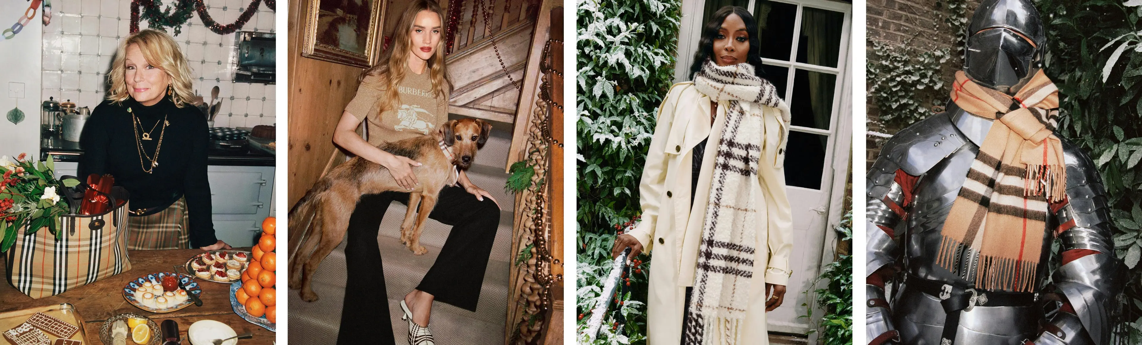 La soirée se déploie au fil des scènes : canapés, conversations, arrivée d’une famille de chanteurs de Noël sur le pas de la porte. Daniel Lee, directeur de la création, décrit le film comme « une invitation à une fête pour la famille et les amis, avec de belles idées de cadeaux ». Les silhouettes portées par les protagonistes incarnent cette idée d’héritage revisité : un vestiaire d’extérieur qui puise dans les codes Burberry tout en les réinterprétant.