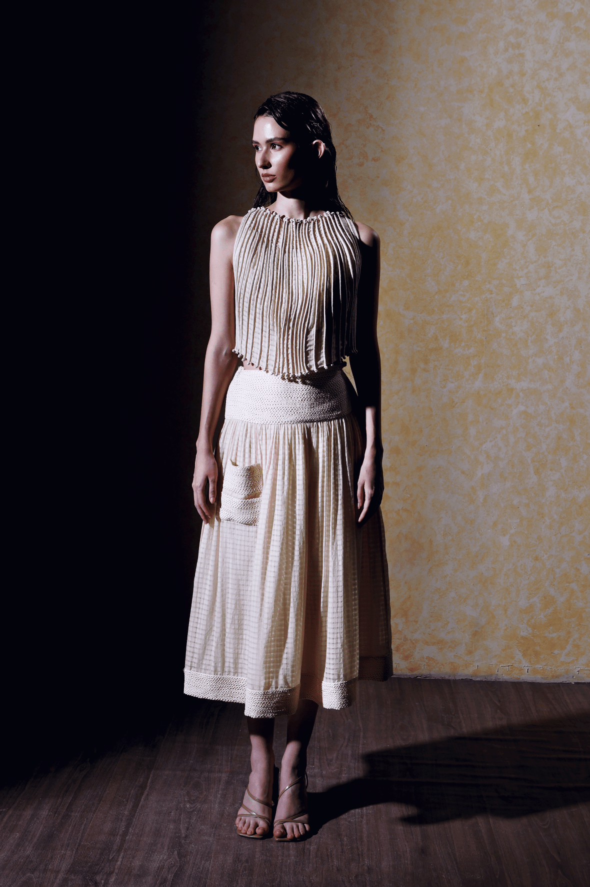 Pouvez-vous nous parler de votre parcours de designer ? Qu’est-ce qui vous a donné envie d’explorer les textiles tissés à la main et de les transformer en couture contemporaine ?