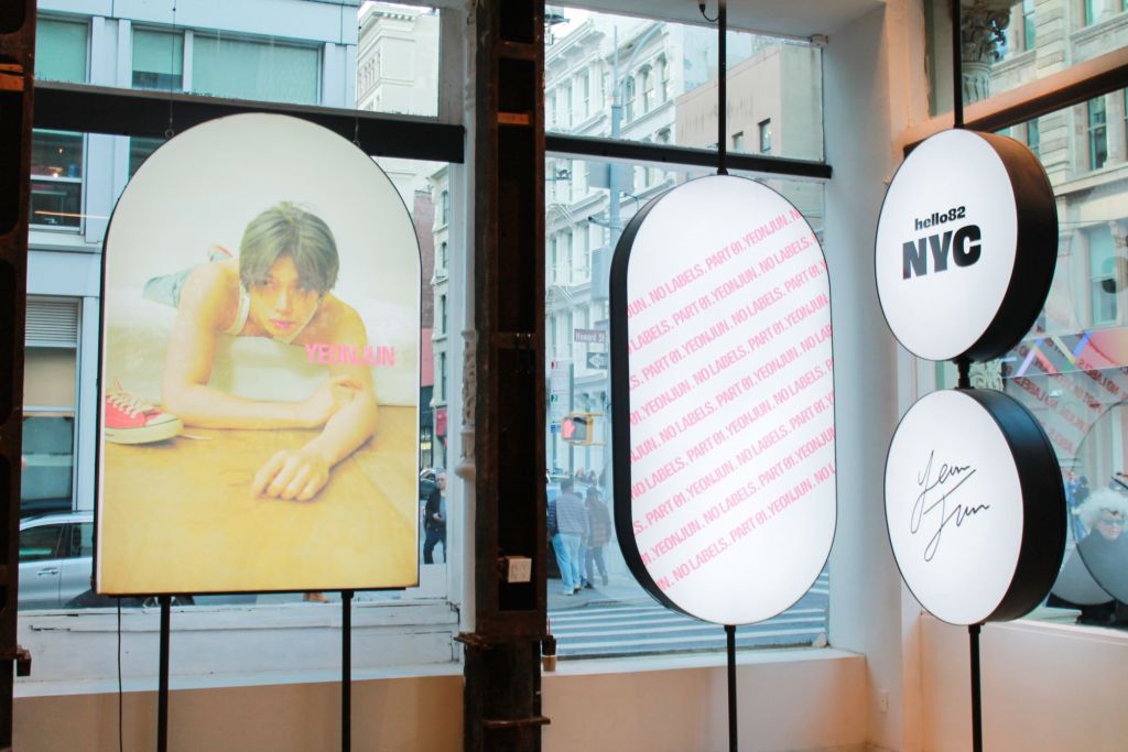 Dès l’aube, une petite file enthousiaste serpente devant la boutique hello82, transformée pour l’occasion en loft dédié à Yeonjun, leader du groupe TOMORROW X TOGETHER. Sur la vitrine, l’iconique cover shirtless de son opus attire tous les regards, provoquant cette fameuse “pause Instagram” qui fait désormais partie du rituel des pop-ups. À l’intérieur, l’espace a été repensé pour l’occasion : images exclusives, corners photo, message board où chacun peut laisser un mot à l’artiste. On est à l’heure, c’est rassurant.