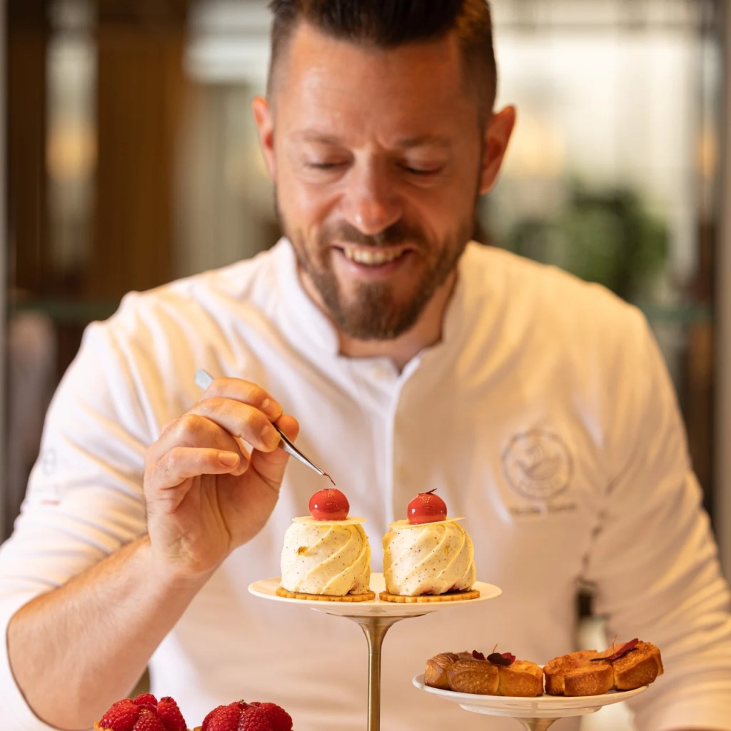 On retrouve des associations autour du saumon, du foie gras ou des agrumes, travaillées avec finesse pour ouvrir le bal sans lourdeur. Le salé n’est pas un passage obligé avant le sucré, bien entendu, mais il installe un rythme, il prépare le palais, et donne au tea time cette allure de rendez-vous gastronomique, mais dans une version douce, de l’après-midi.