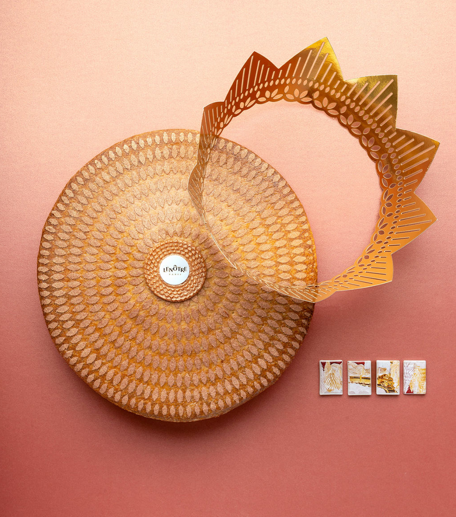 Chez Lenôtre, l’Épiphanie est voyage. Pour 2026, la maison signe une galette baptisée Escale en Orient, une création qui s’éloigne des codes strictement amandés pour glisser vers des notes plus solaires, portées par la fleur d’oranger et une douceur de fruits. Sous un feuilletage croustillant, paré de délicats grains de blé dorés, la galette signature assume une identité très pâtissière, précise, construite en strates.