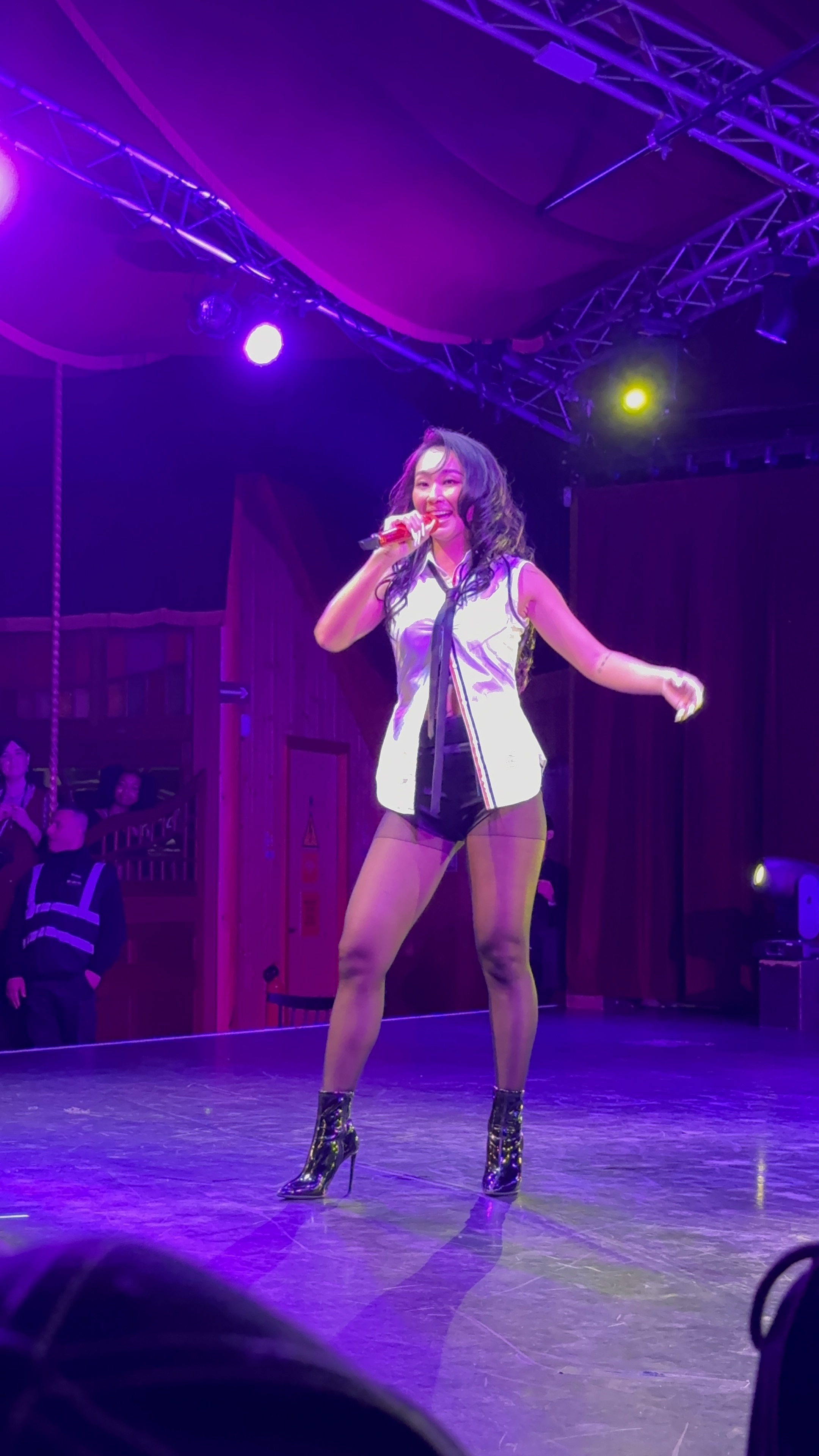 Ce qui s’impose rapidement, c’est l’endurance scénique de l’artiste. Hyolyn danse tout au long du spectacle en talons aiguilles, sans jamais sacrifier la puissance vocale ni la précision du geste. Une performance exigeante, tenue avec une maîtrise presque désarmante, qui rappelle pourquoi elle s’est imposée comme l’une des performeuses les plus respectées de sa génération. Ici, la technique ne s’exhibe pas : elle soutient l’intensité.