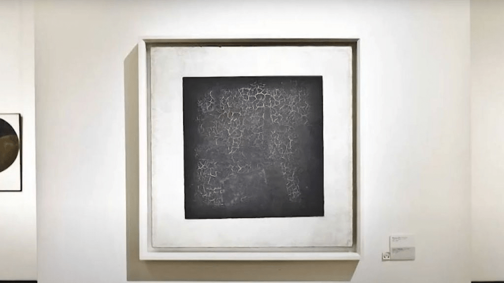 On parle souvent du Carré noir comme d’un aplat. En réalité, l’œuvre est une surface, un champ de matière. Les craquelures, le vieillissement, la texture, rappellent que le “zéro” n’est pas une abstraction désincarnée. Le zéro existe-t-il vraiment ?