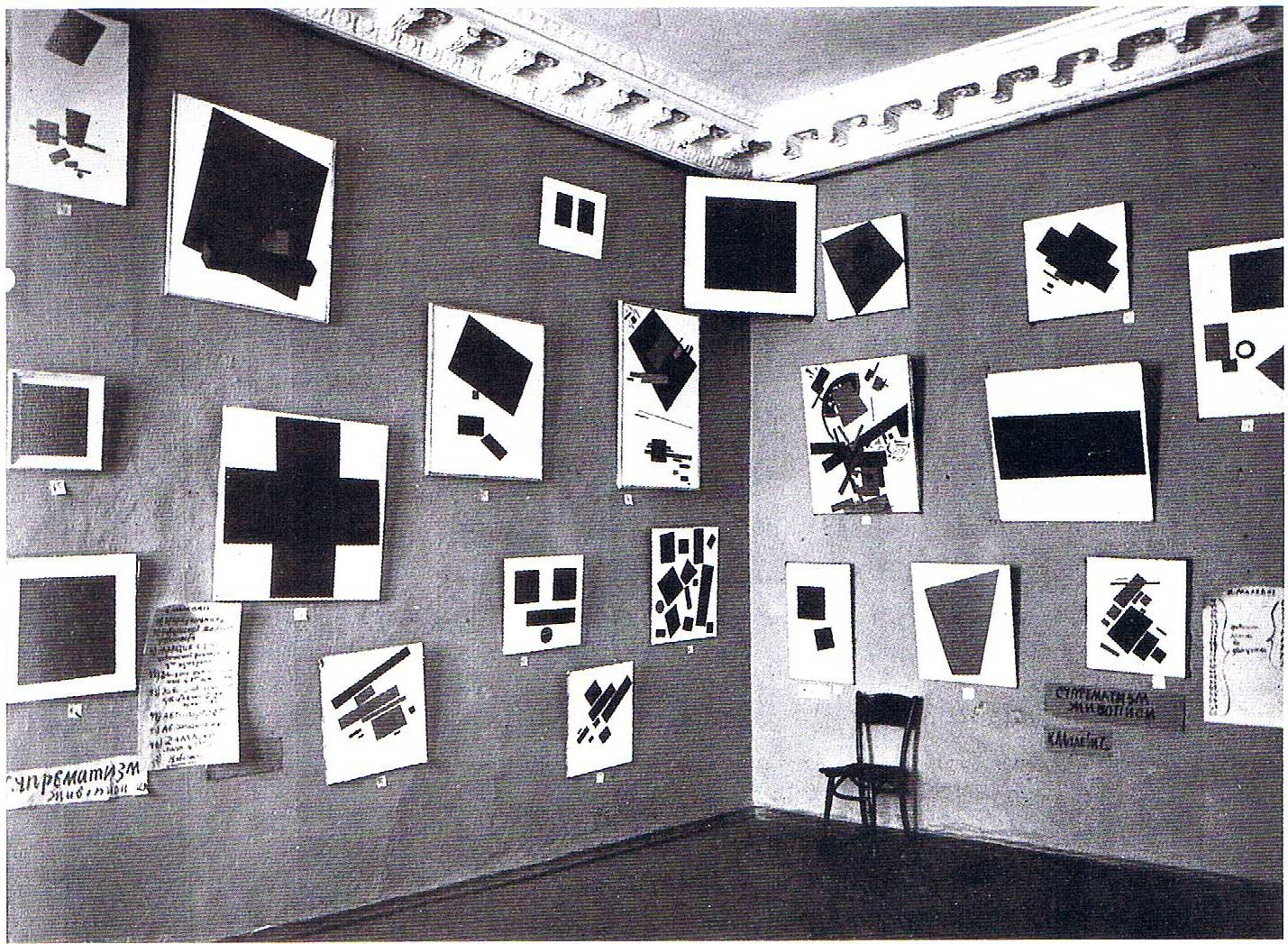 Décembre 1915, Petrograd. Dans l’exposition 0,10, Malevitch place Carré noir haut dans l’angle d’une salle, à l’endroit où, dans une maison orthodoxe, se tient l’icône. Le geste est simple, mais il ne propose pas une simple image.
