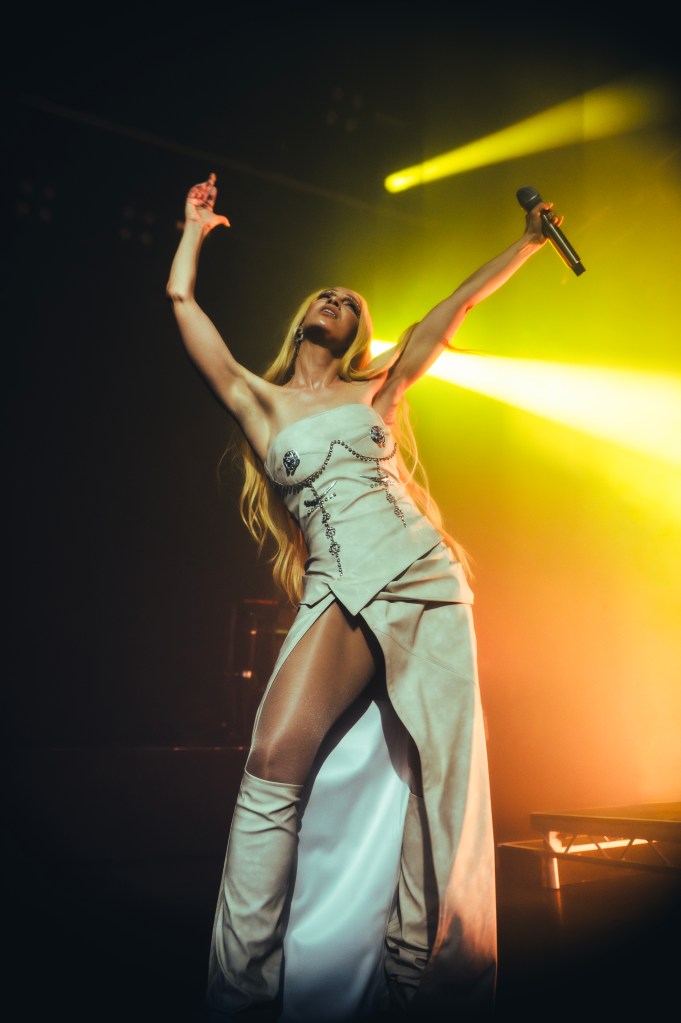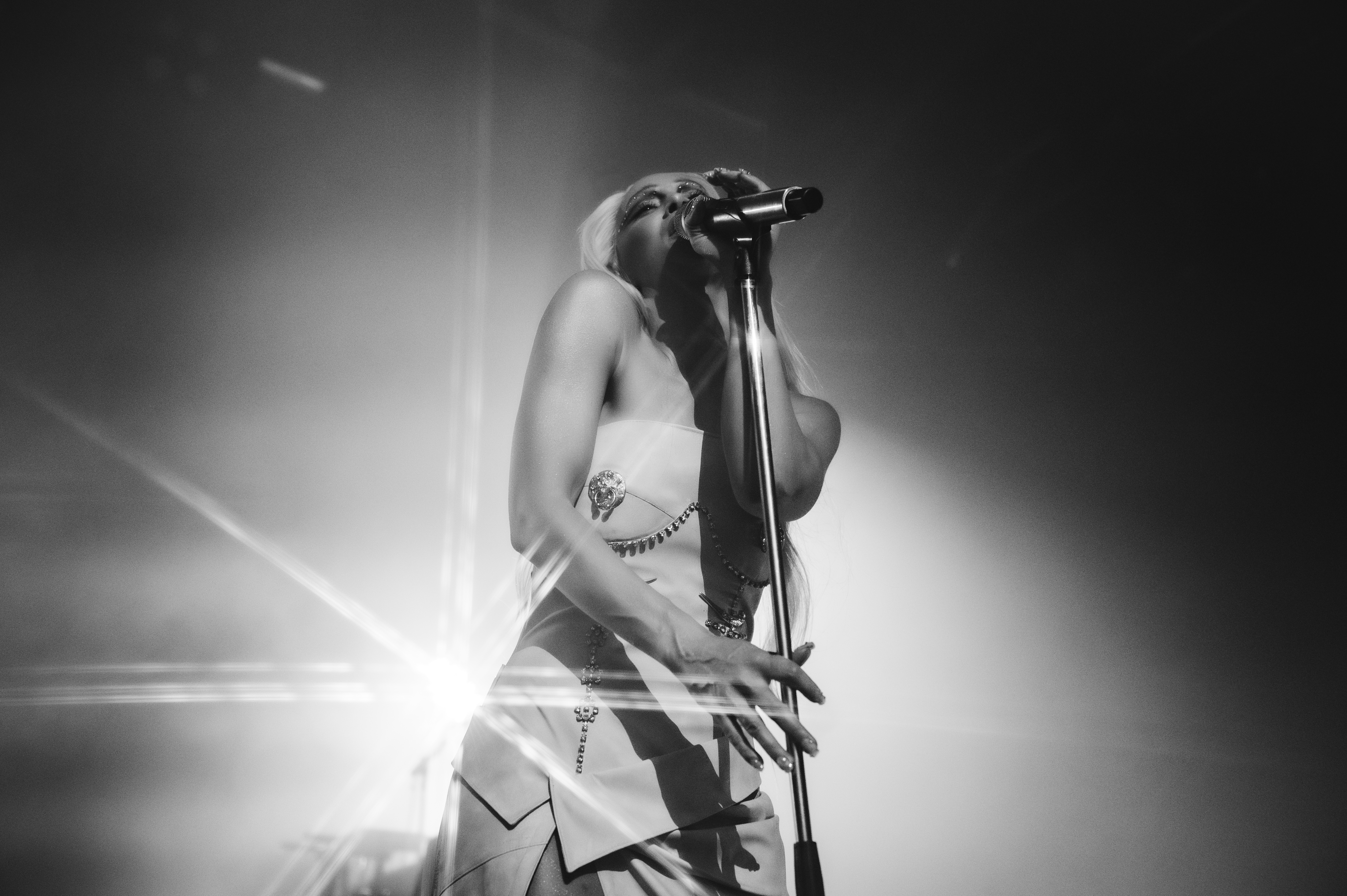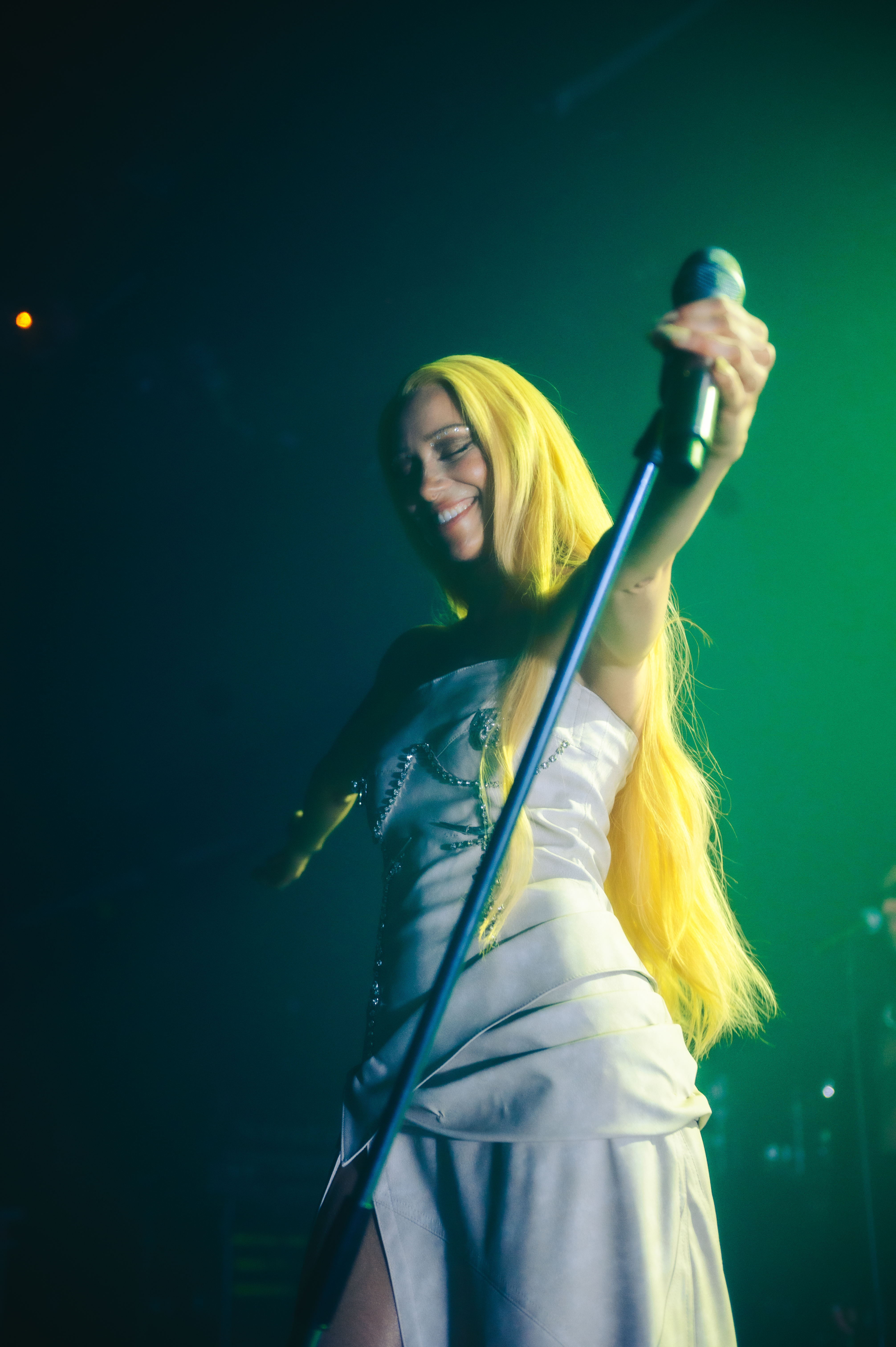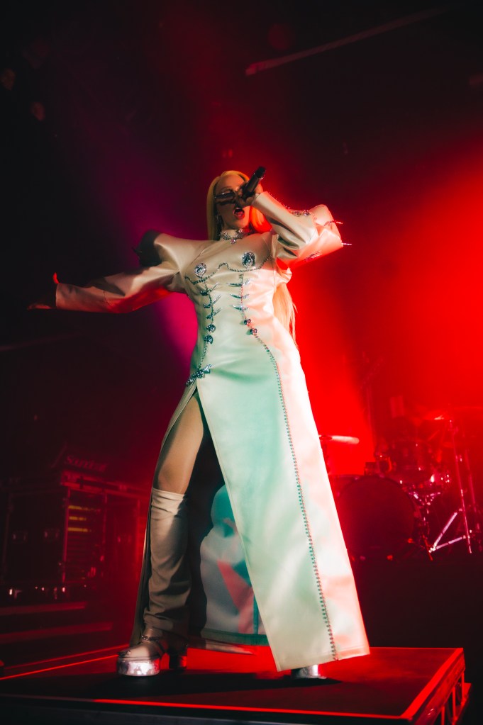 Sur scène, son expérience du live prend le dessus. Agnes, née Agnes Emilia Carlsson, domine l’ensemble par la voix, précise, gère son affaire comme son public. Elle parle très tôt de liberté, de présence, de ce réflexe de vivre la soirée à fond, et la salle répond immédiatement. Ce passage londonien compte aussi parce qu’elle devait déjà apparaître aux dernières éditions de Hoopla et avait dû annuler. Ici, la sensation est celle d’un retour attendu, et ça s’entend dans les réactions.