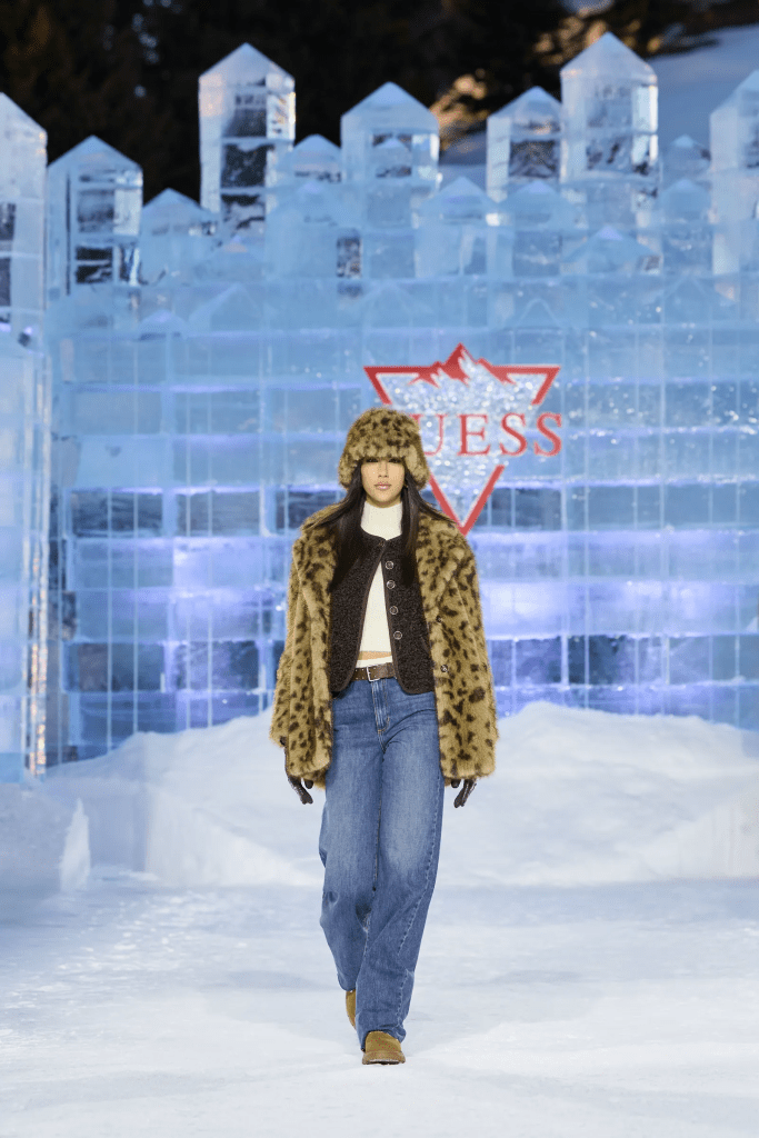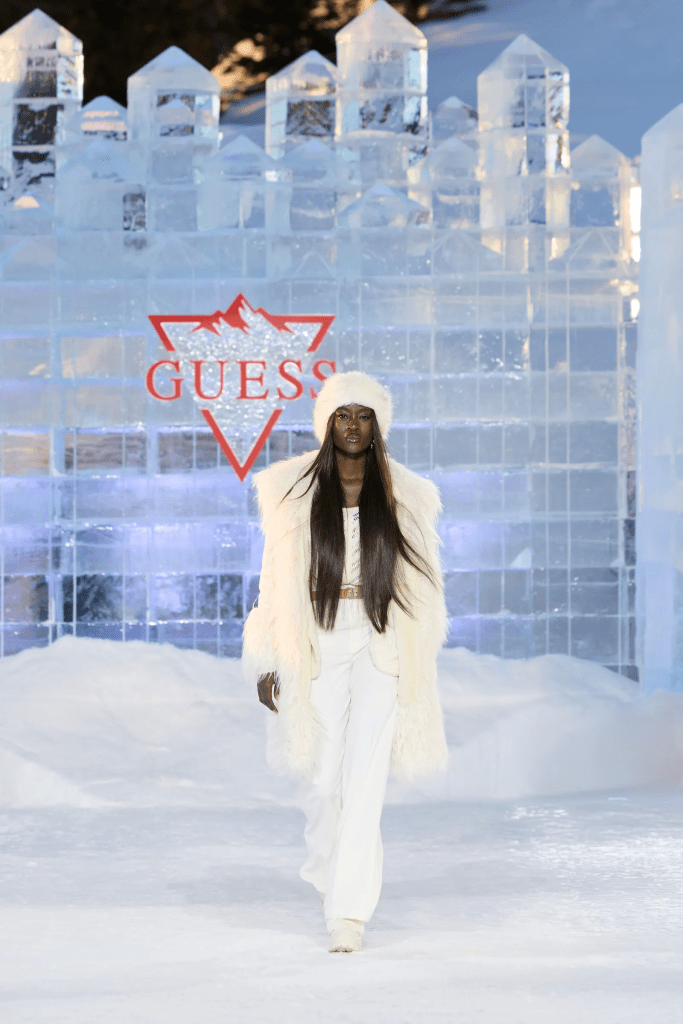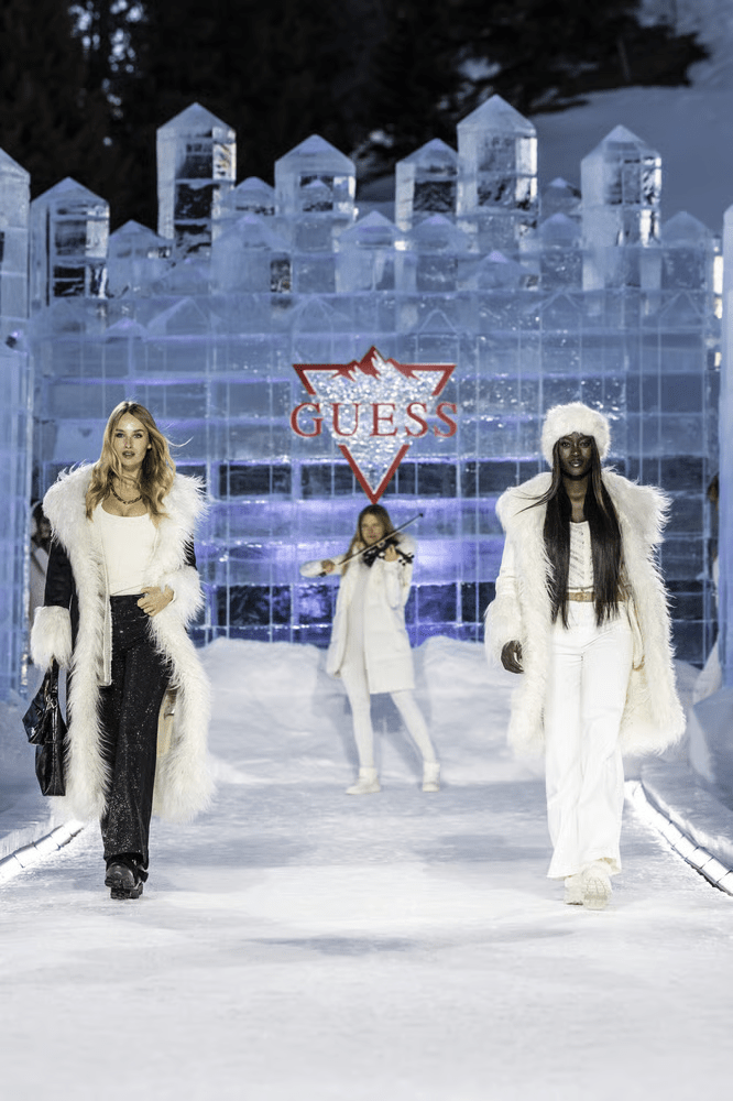 Guess a dévoilé un défilé exclusif organisé à Gstaad, en Suisse, dans le cadre des célébrations de son 45e anniversaire. Le show s’inscrit dans une stratégie d’activation d’une clientèle toujours plus premium. La marque revendique une première dans ce décor alpin, en installant un podium au cœur de son paysage de neige.