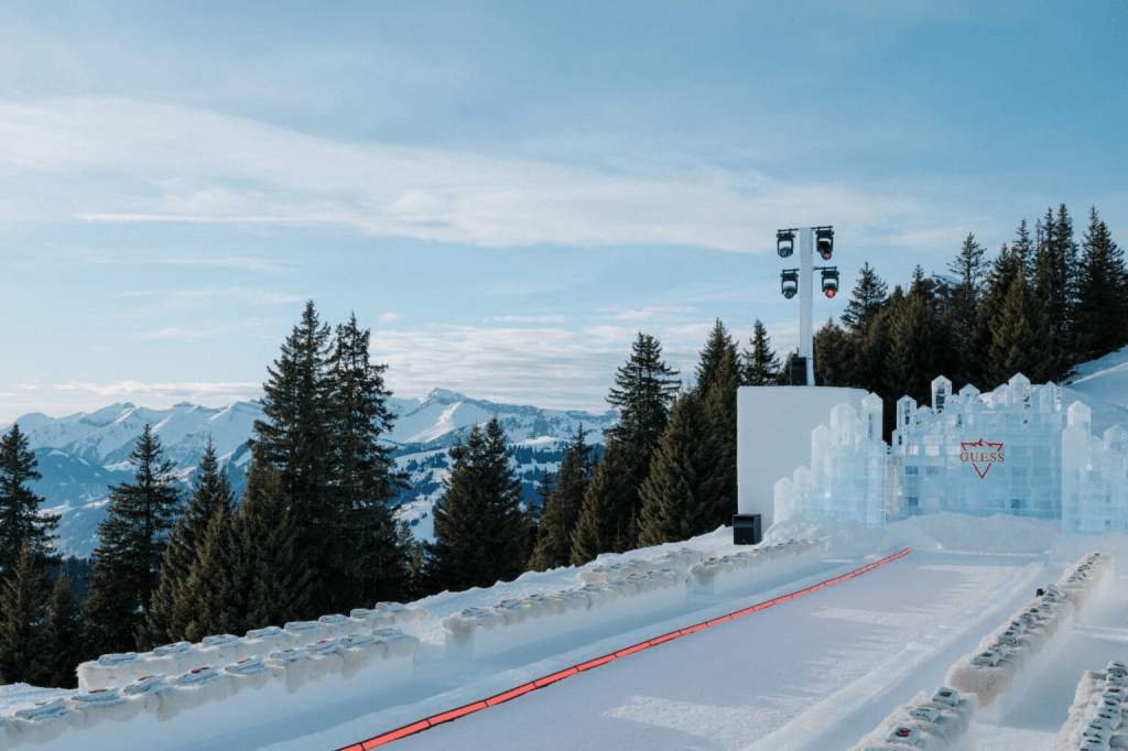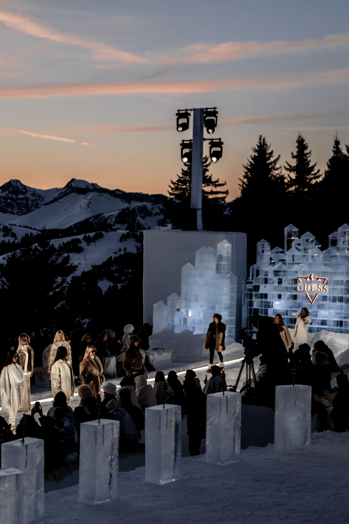 Ce défilé prolonge l’expérimentation menée l’an dernier par Guess avec un runway en altitude à Glacier 3000. À Gstaad, le concept évolue vers une expérience plus interactive, où le lieu ne sert plus seulement de décor mais devient un élément narratif. L’événement capitalise sur la rareté du cadre, sur l’idée d’exclusivité et sur son iconographie.