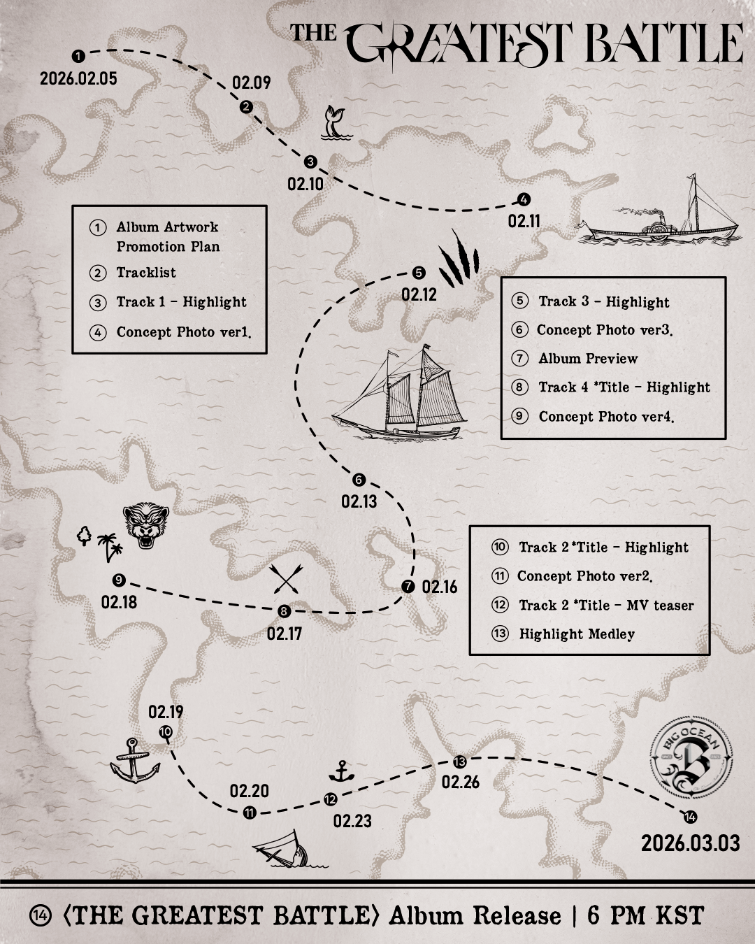 Le 3 mars 2026 à 18h, heure coréenne, soit 10h en France, Big Ocean dévoilera son troisième mini-album, The Greatest Battle. Un retour très attendu qui ne se contente pas d’annoncer de nouveaux morceaux, mais pose surtout les bases d’un changement de direction artistique clair et assumé.