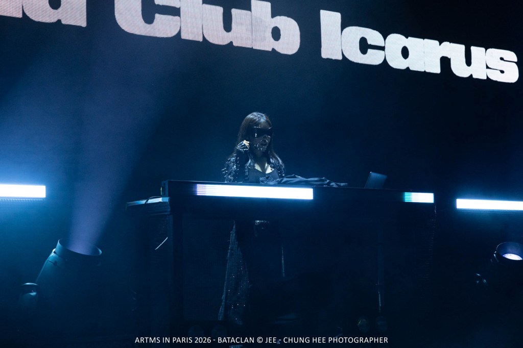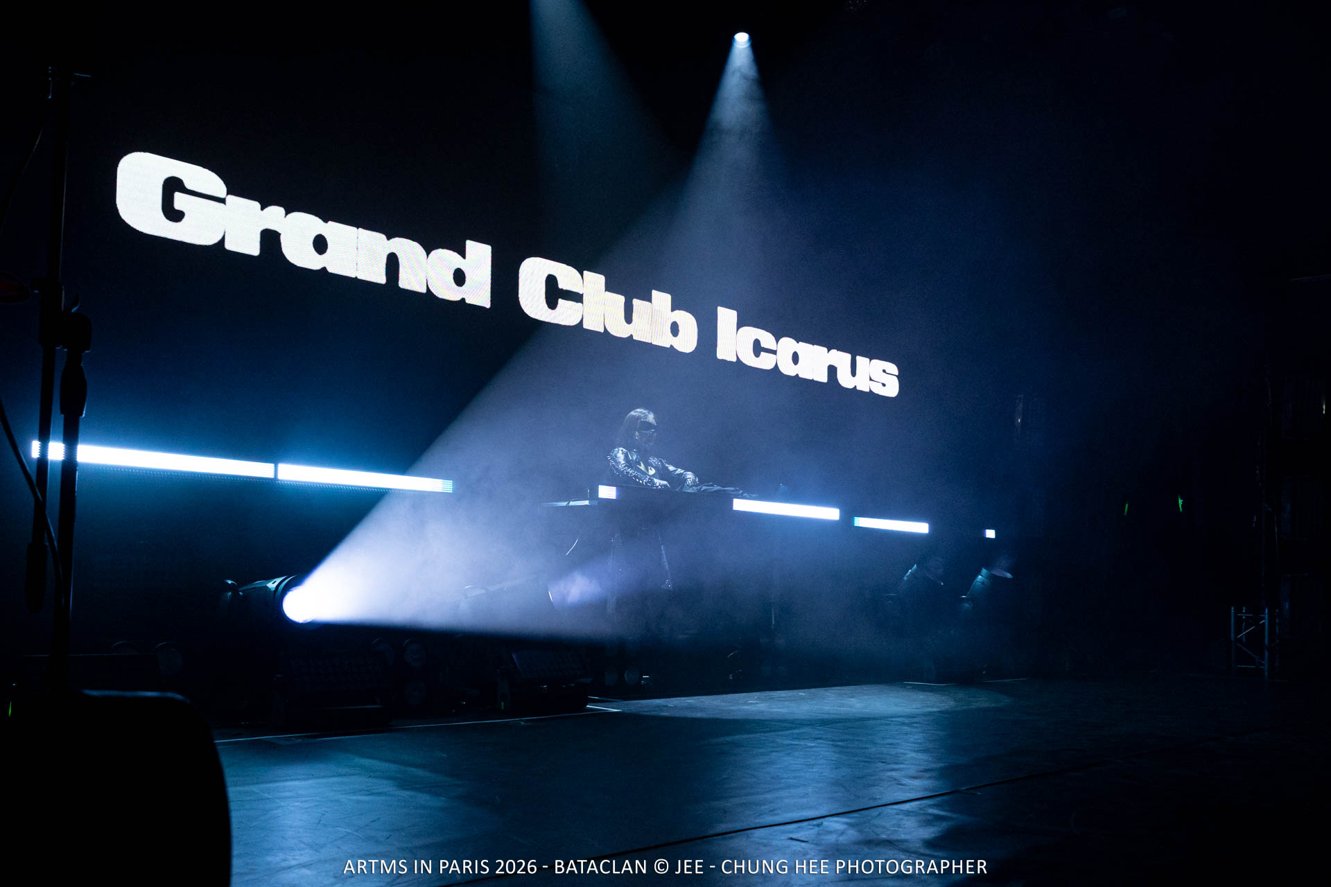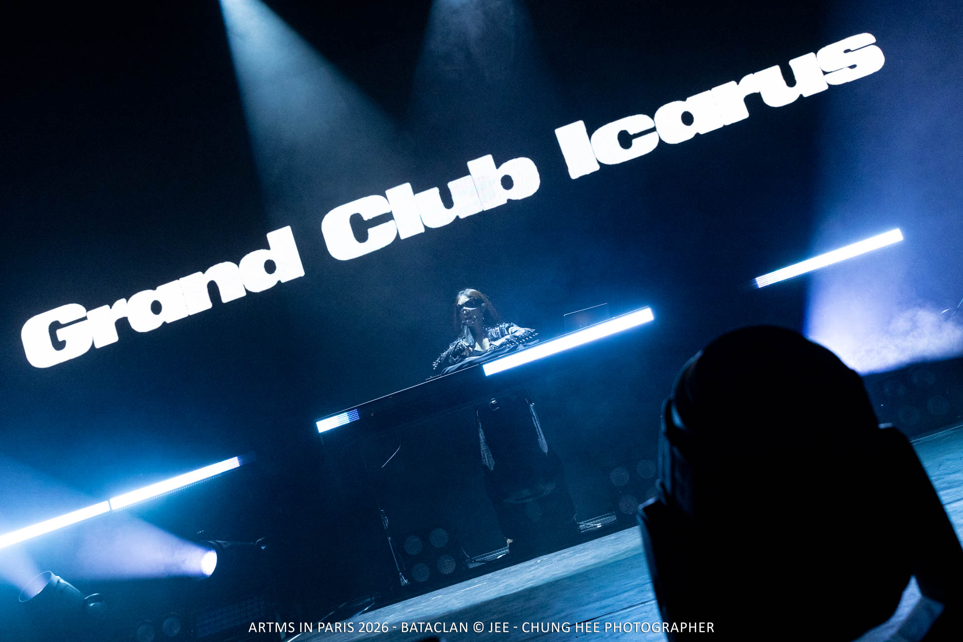 Le concert, basé sur le concept “Grand Club Icarus”, a débuté sur un DJ set qui a su sans peine intensifier l’ambiance grâce l’adhésion enthousiaste du public membre privilégié du club ARTMS.