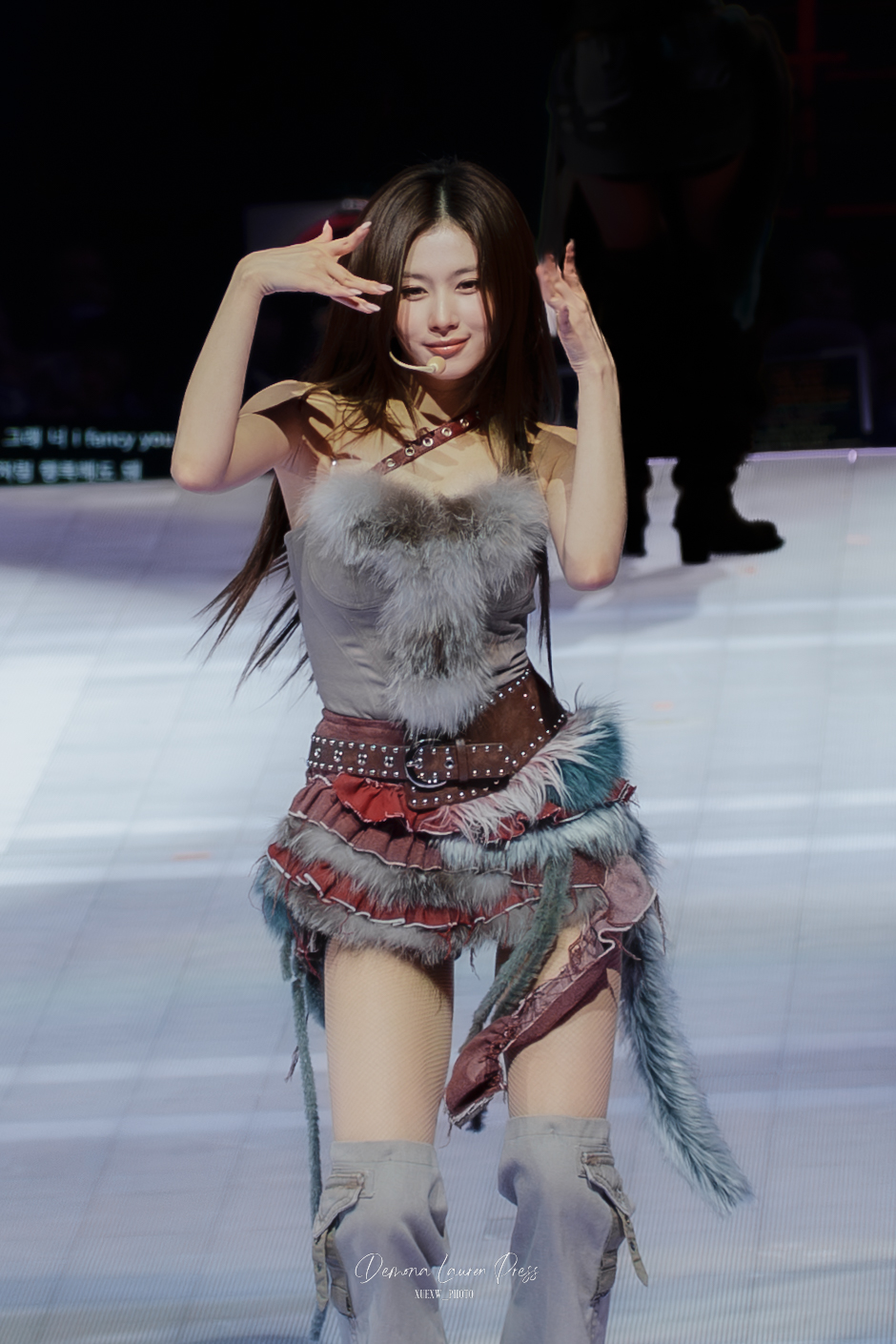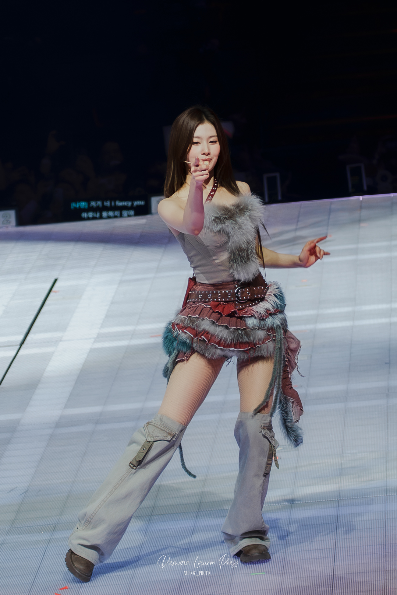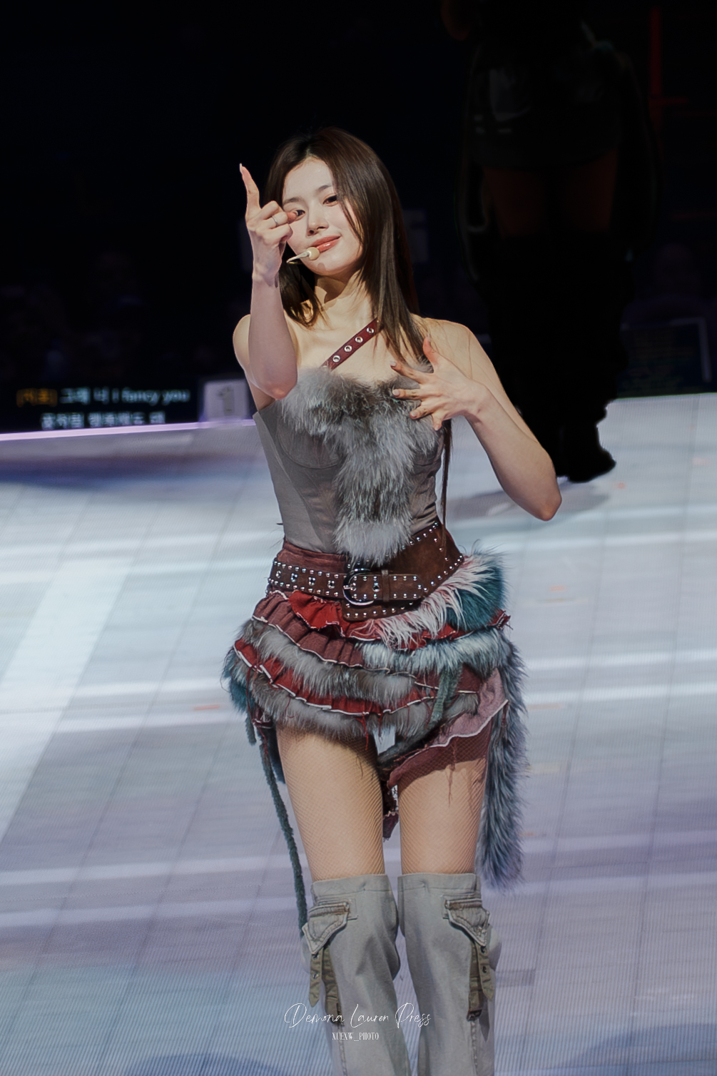 Mention spéciale au live band. Puis, dans un segment plus sombre, Gone isole Jihyo sous une lumière rose avant que le groupe ne se reconstitue, avant que CRY FOR ME ne reprenne une couleur plus rock, plus dangereuse. Cette énergie instrumentale donne de la morsure à la soirée et empêche le show de se lisser en simple pop-polish.