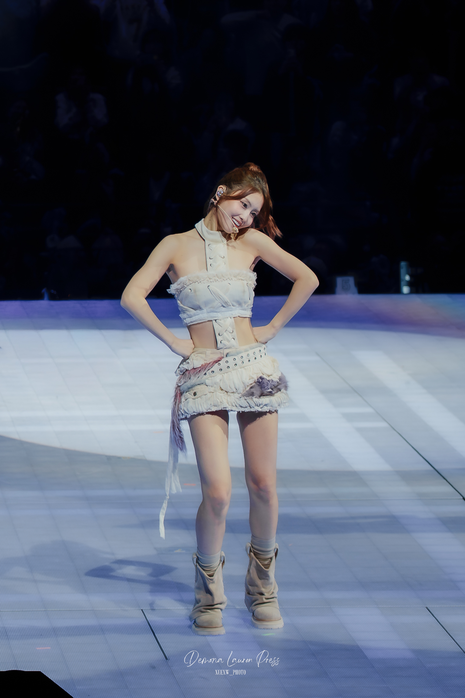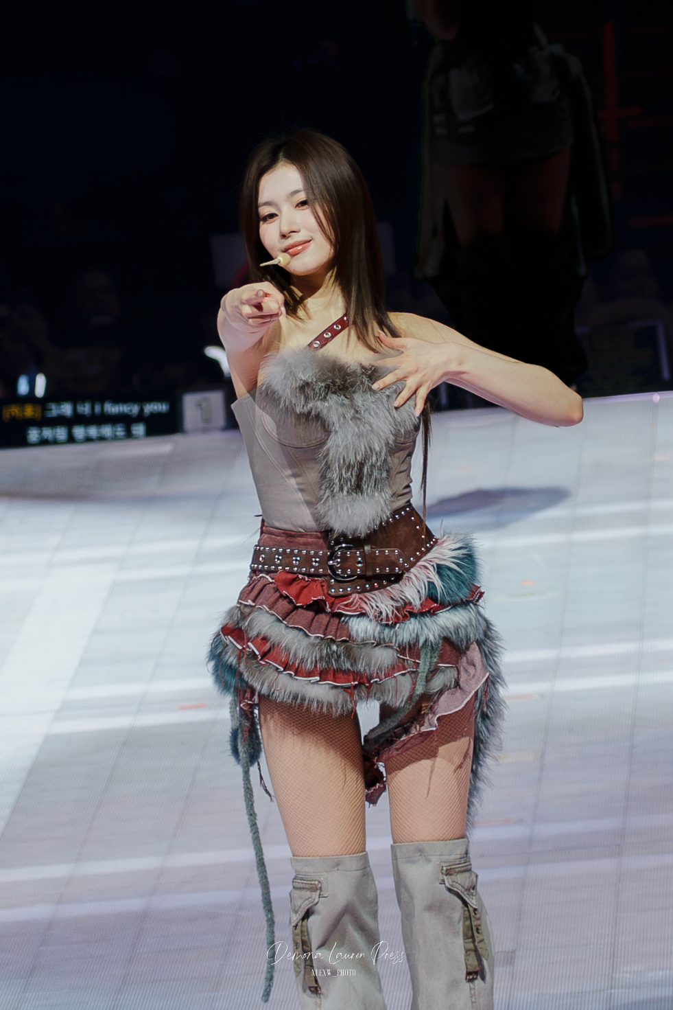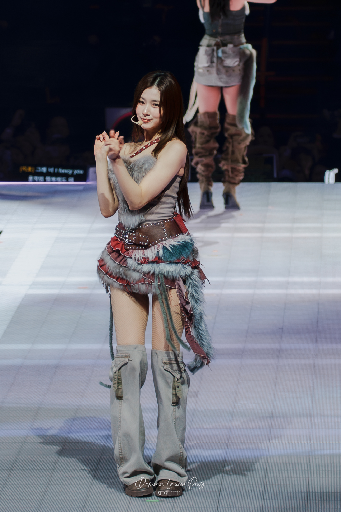 Mention spéciale au live band. Puis, dans un segment plus sombre, Gone isole Jihyo sous une lumière rose avant que le groupe ne se reconstitue, avant que CRY FOR ME ne reprenne une couleur plus rock, plus dangereuse. Cette énergie instrumentale donne de la morsure à la soirée et empêche le show de se lisser en simple pop-polish.