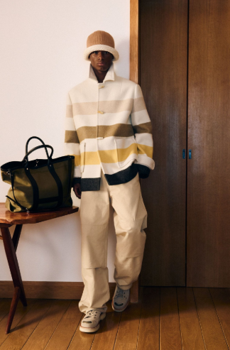 Nigo parle alors de retour « à la maison », mais le mot ne désigne pas une nostalgie. Revenir aux codes du fondateur, puis les faire passer par son propre vocabulaire, celui d’un collectionneur qui sample, classe, réactive. La collection s’organise autour d’un dialogue France-Japon, ouvert à d’autres horizons, Americana, workwear, tailoring italien, détails chinois. Le résultat ne cherche pas l’unité par l’effacement. Il cherche la cohérence avec une volonté farouche de superposition.