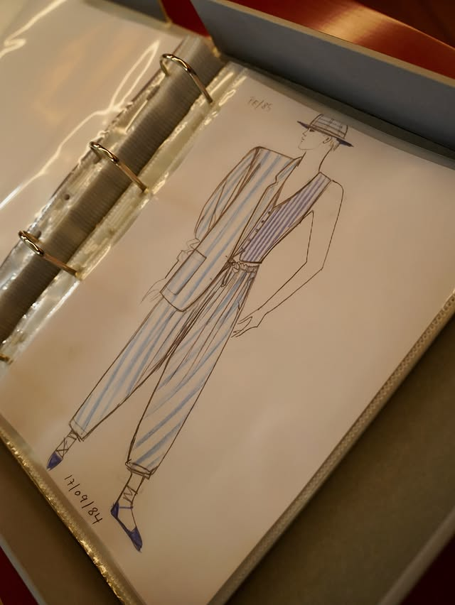 La saison FW26 se comprend aussi comme un travail d’archiviste. Dans une pièce bibliothèque de la maison, KENZO expose une sélection de documents et de vêtements, croquis, éditoriaux, invitations, et pièces clés des années 1980–1990. La démarche n’est pas seulement pédagogique. Un quilted jacket homme FW83 et une veste femme brodée FW87 rappellent que l’hybridation n’a rien de nouveau. C’est une mécanique historique qui est remise au goût du jour. Juste autrement. Mais toute réinterprétation n’est-elle pas recréation ?