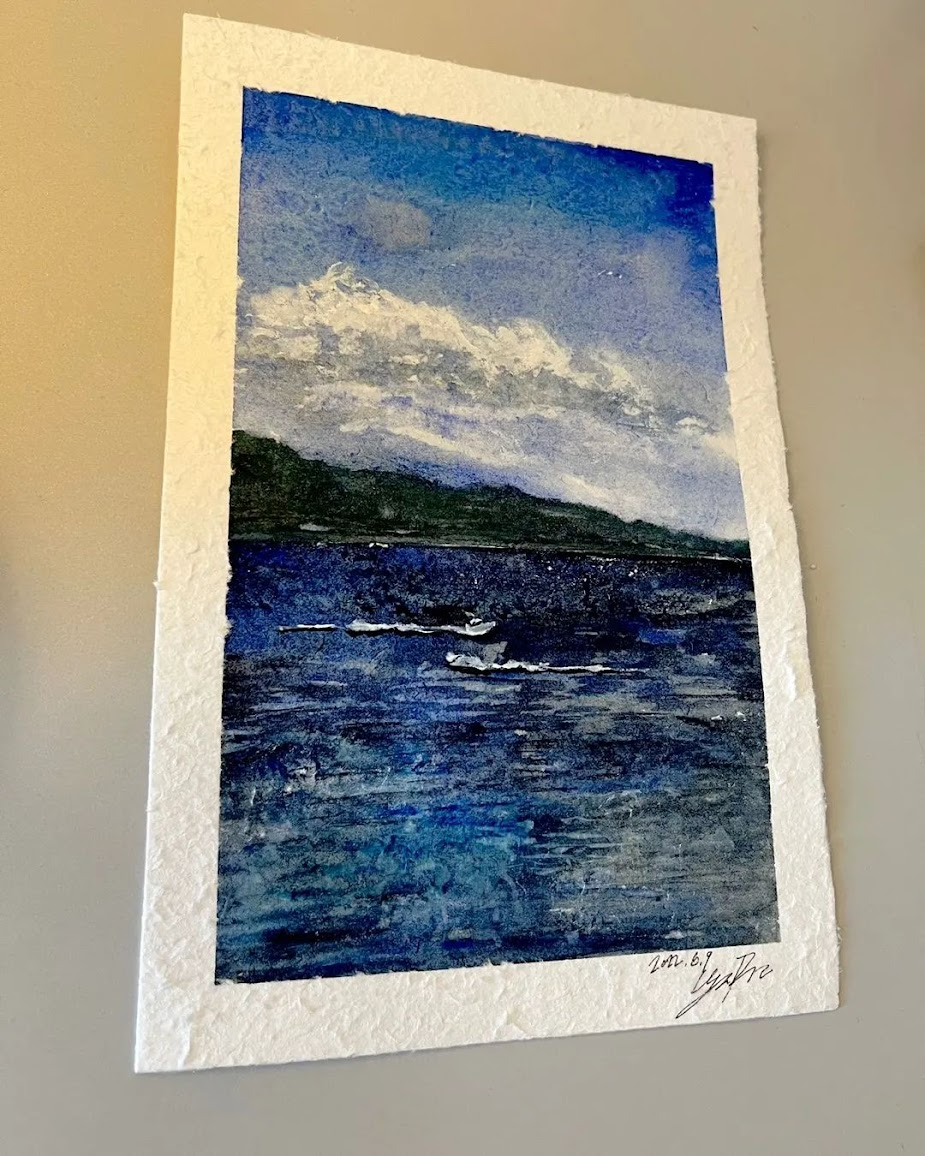 Dans cette logique, la nature agit comme un équivalent de son art. Les espaces ouverts, la mer, le ciel, la lumière, imposent moins de bruit et moins d’angles. Ils laissent de la place. Le voyage devient un carnet de voyage psychique. Non pas un récit d’étapes, mais une manière de retrouver un état intérieur, de le contempler, de le comprendre, de l’accepter, par le regard ou par l’image.